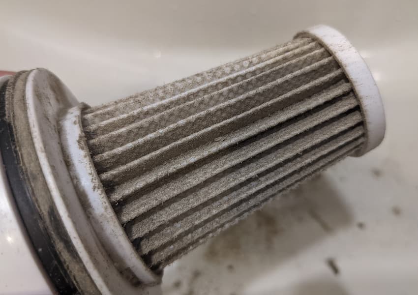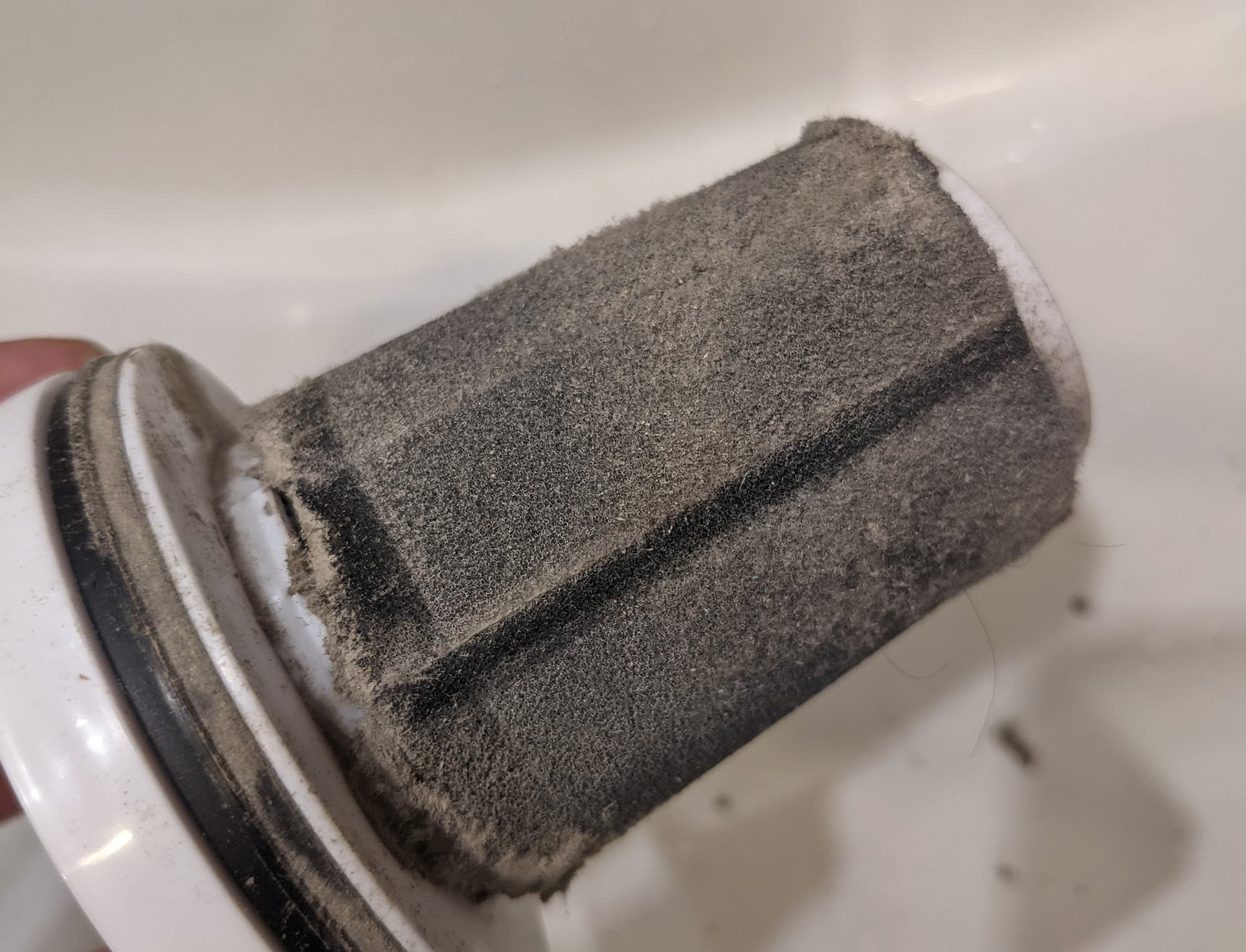 Поролон, разумеется, не способен задержать всю пыль, но до наружной стороны HEPA-элемента доходит сравнительно немного. Внутренняя часть фильтра тонкой очистки остается чистой даже после нескольких интенсивных уборок.