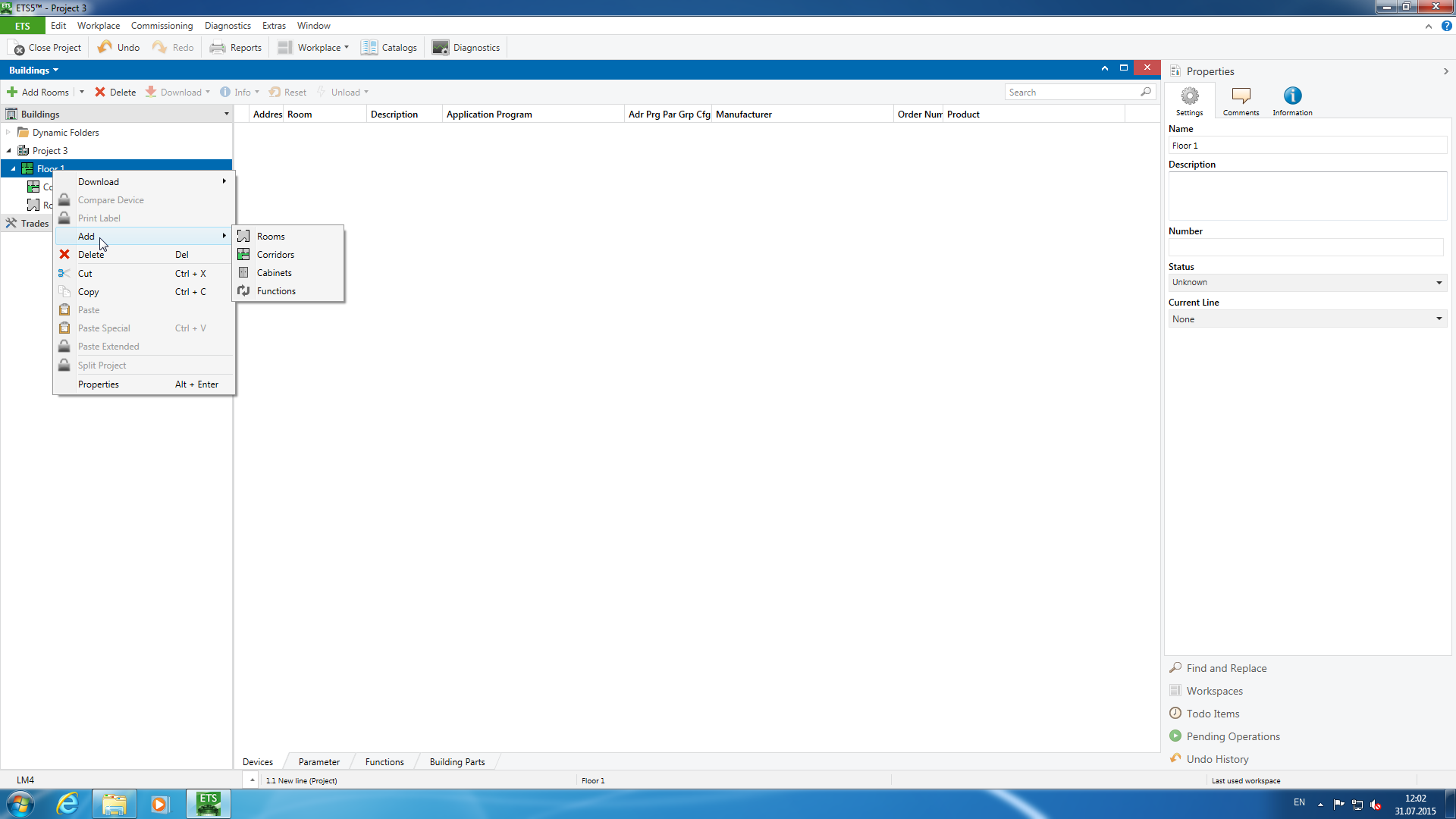 На компьютер мы установили ETS5 с лицензией Demo, которой нам будет вполне достаточно для знакомства с системой. Обратите внимание, что ETS в некоторых аспектах отличается от большинства привычных программ для работы с документами. Все рабочие данные программа хранит во внутренней базе данных на компьютере, где она установлена. Для обмена файлами между разными системами или пользователями требуются явные операции экспорта и импорта проектов. Здесь нельзя открыть одновременно несколько файлов. Все вносимые правки сразу же отражаются в проекте. Истории изменений и возможности «отката» не предусмотрено. Это, безусловно, требует повышенного внимания при работе с программой. Также очень желательно использовать монитор с разрешением не менее FullHD, поскольку для многих операций требуется иметь доступ сразу к нескольким окнам. По этой причине, приведенные далее скриншоты желательно рассматривать в полном размере.
