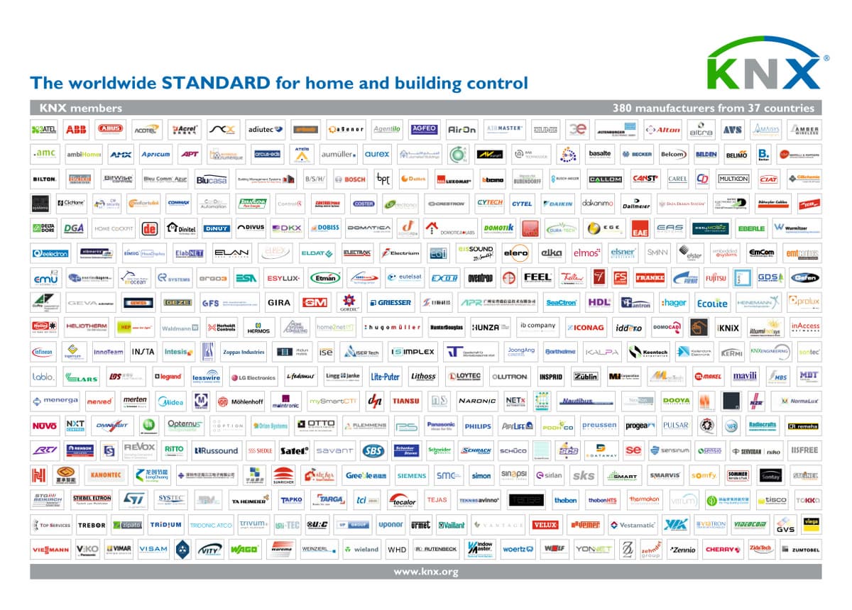 В ассоциацию KNX сегодня входят более 350 компаний по всему миру. Число сертифицированных продуктов — более 7000. Общее число установленных в мире устройств, отвечающих этому стандарту, составляет по некоторым оценкам более десяти миллионов. Наиболее известными производителями оборудования KNX сегодня являются ABB, Gira и Schneider Electric.