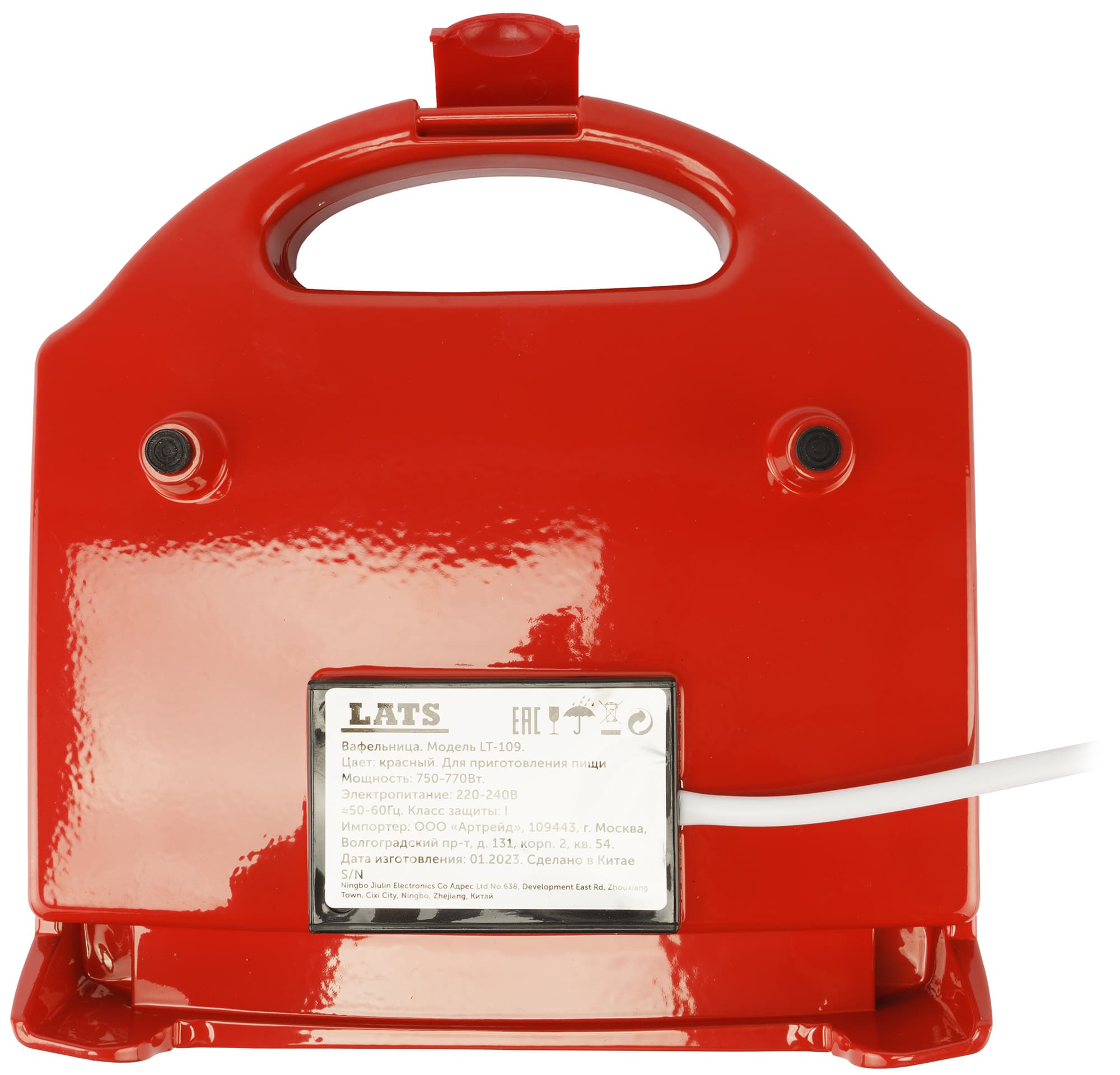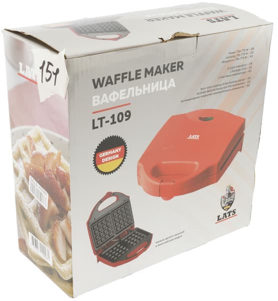 Электровафельница Lats LT-109 — компактный прибор, который не займет много места на кухне и не разорит бюджет при покупке. Панели устройства имеют антипригарное покрытие, что положительно сказывается на результатах выпекания и сильно облегчает уход за поверхностью.