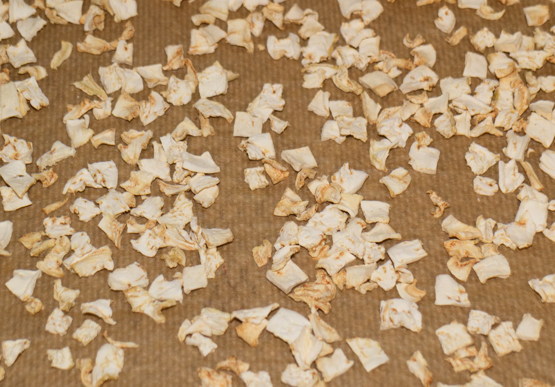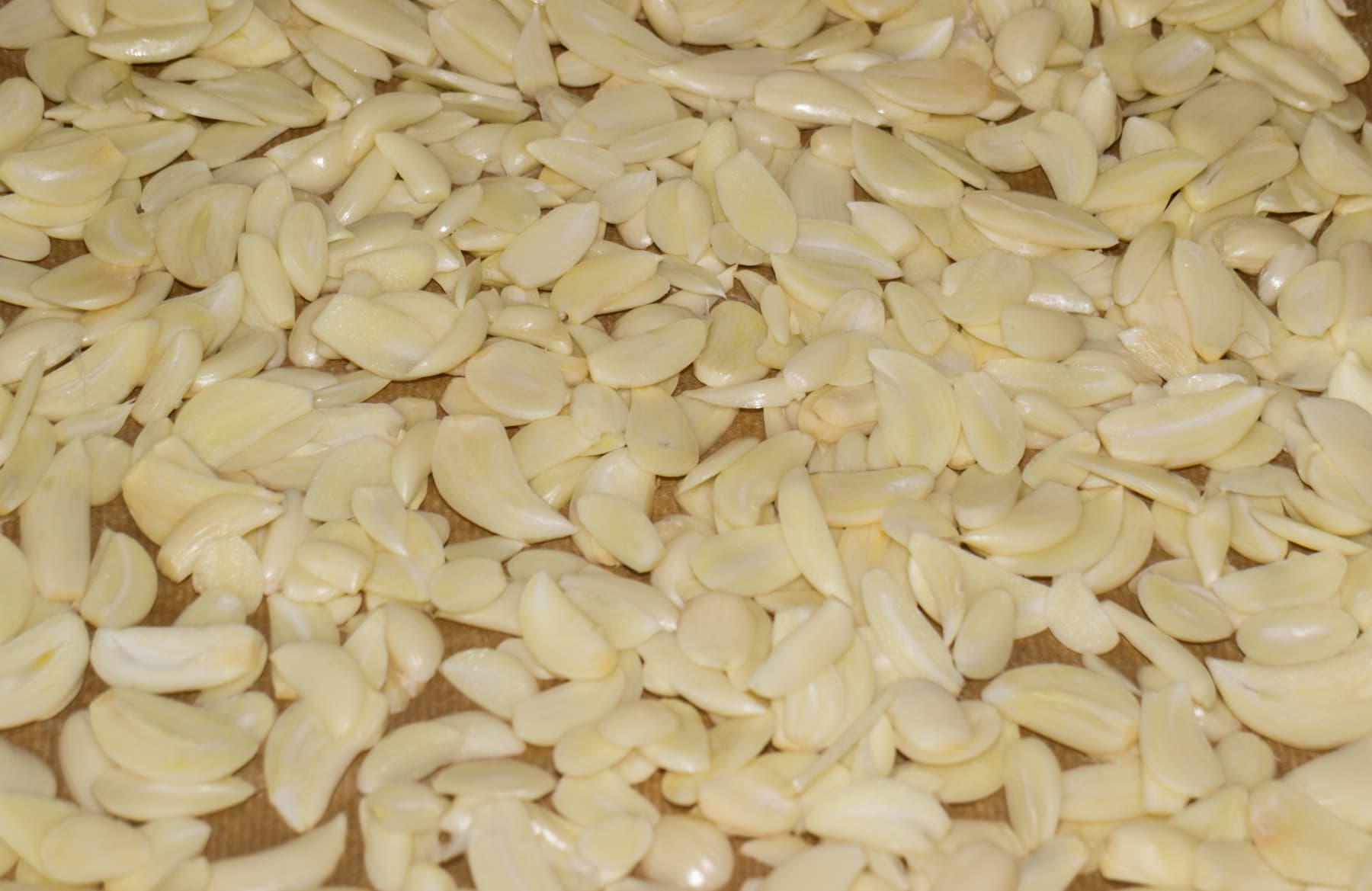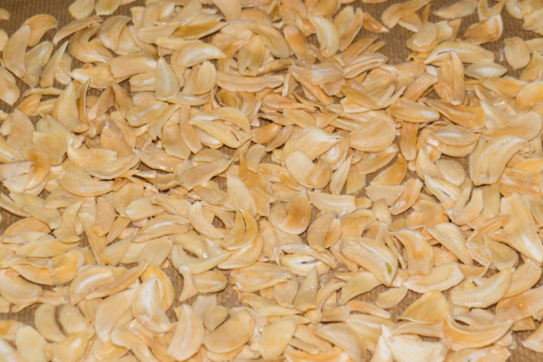 Очищенный и нарезанный плоскими кусочками чеснок весом в 430 г был разложен на одном поддоне.