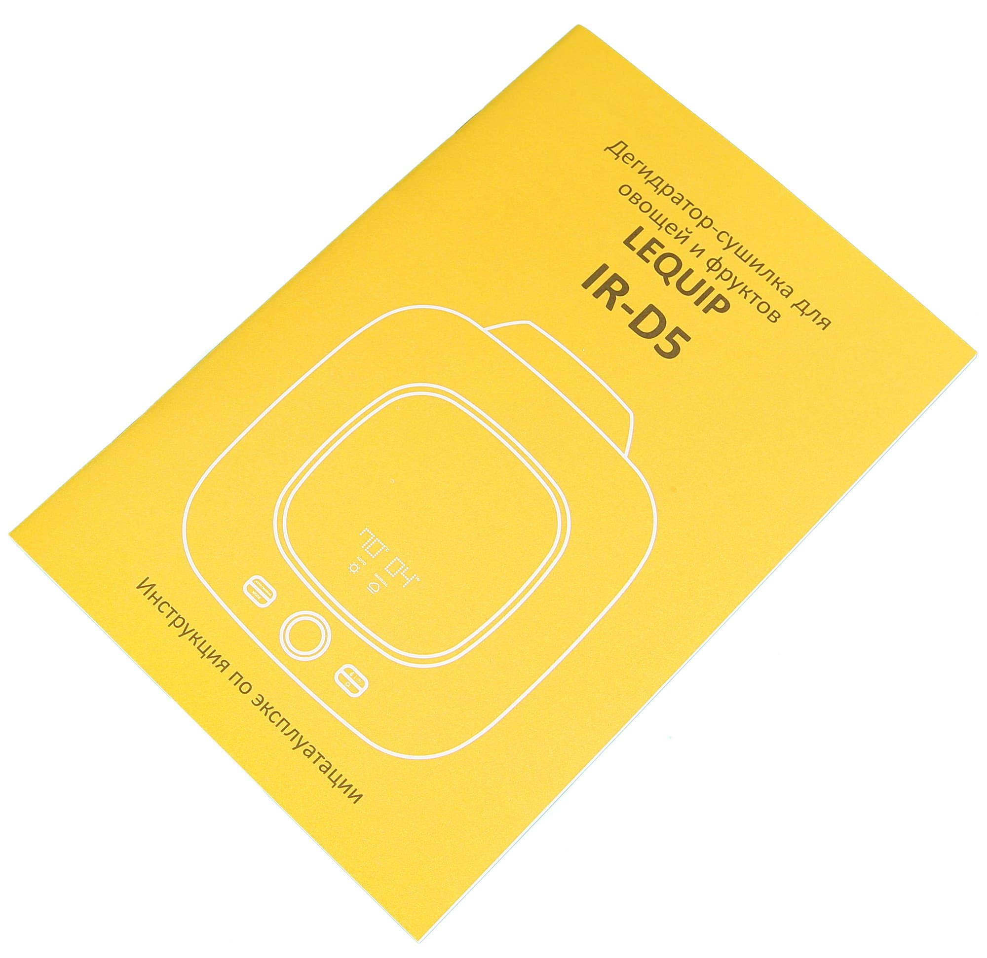 Брошюра формата крупнее А5 изготовлена из плотной бумаги. Информация доносится только на одном языке — русском. Содержание инструкции типичное. Много сведений посвящено мерам безопасности при использовании дегидратора. Обилие графической информации делает изучение руководства не таким нудным и скучным. Внимательно прочитав документ, пользователь узнает о комплектации и назначении отдельных деталей, правилах эксплуатации, чистке и уходе. На последнем листе инструкции напечатан гарантийный талон. Несколько страниц посвящены советам по дегидрации разных типов продуктов. Сведения приведены в табличной форме и очень легки для восприятия и поиска нужной информации. Также пользователь может ознакомиться с рекомендациями по хранению высушенных продуктов.