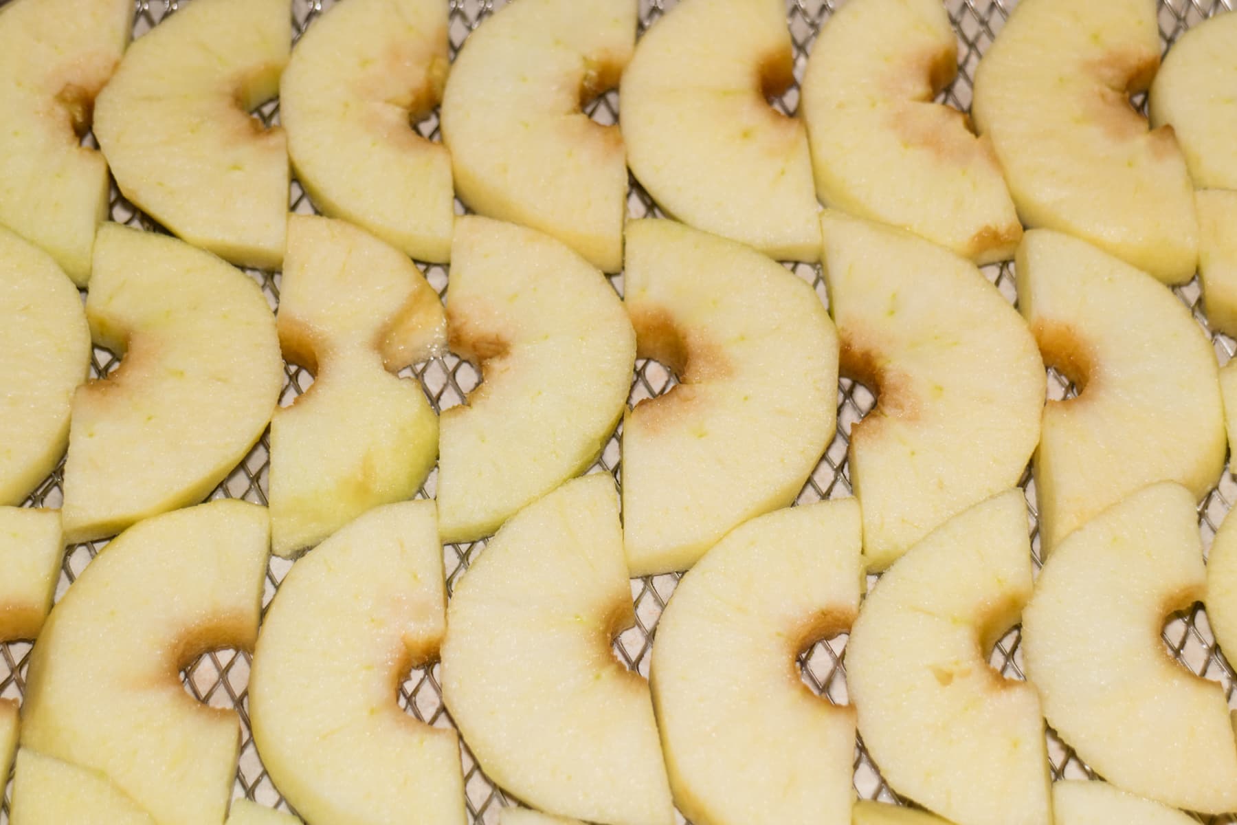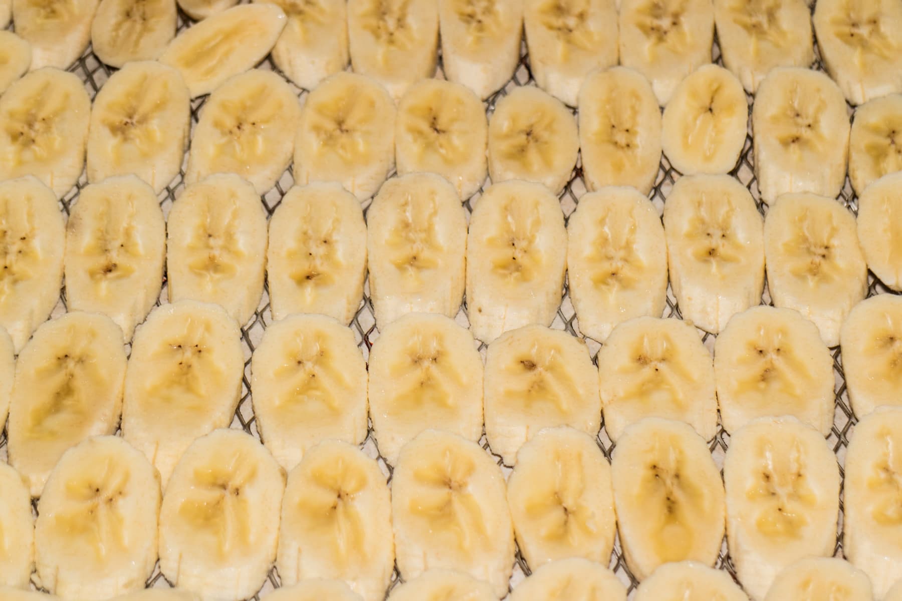 На трех решетках нам удалось разместить 1,72 кг нарезанных бананов.