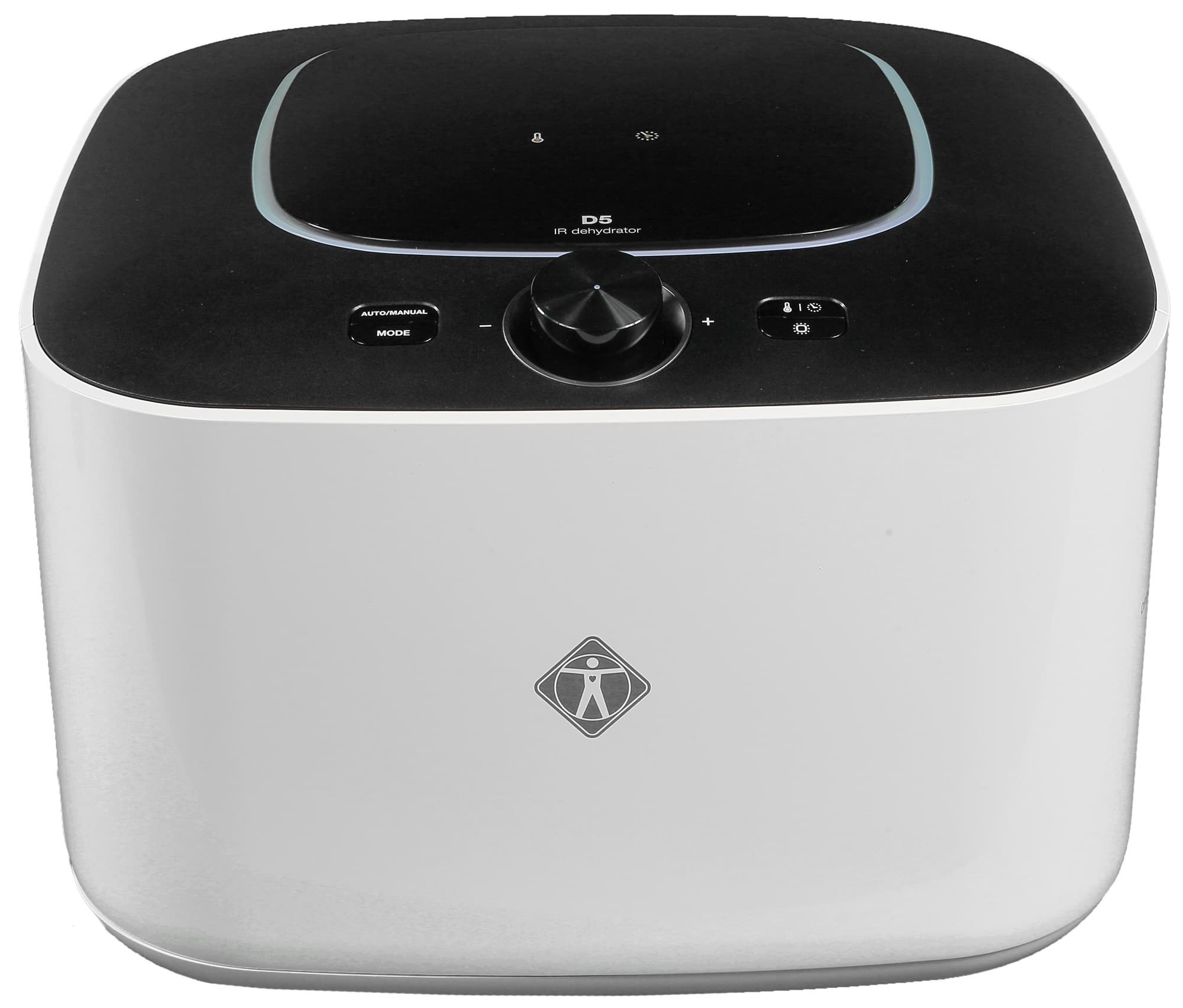 L’equip IR-D5, похоже, первый настолько «умный» дегидратор, попавший на тесты в лабораторию iXBT.com. Во-первых, в устройстве реализована функция автоматической сушки — решение настолько простое и гениальное, что непонятно, почему до сих пор мы не встречали прибора с такой функцией. В дегидратор встроены датчики влажности, по данным которых рассчитывается время окончания процесса тепловой обработки. По заявлению производителя, аппарат с помощью интеллектуальной системы управления способен определять не только время, но и температуру сушки. Процесс дегидрации прекращается, как только влажность воздуха в продукте понизится до предельных заложенных в программу значений.