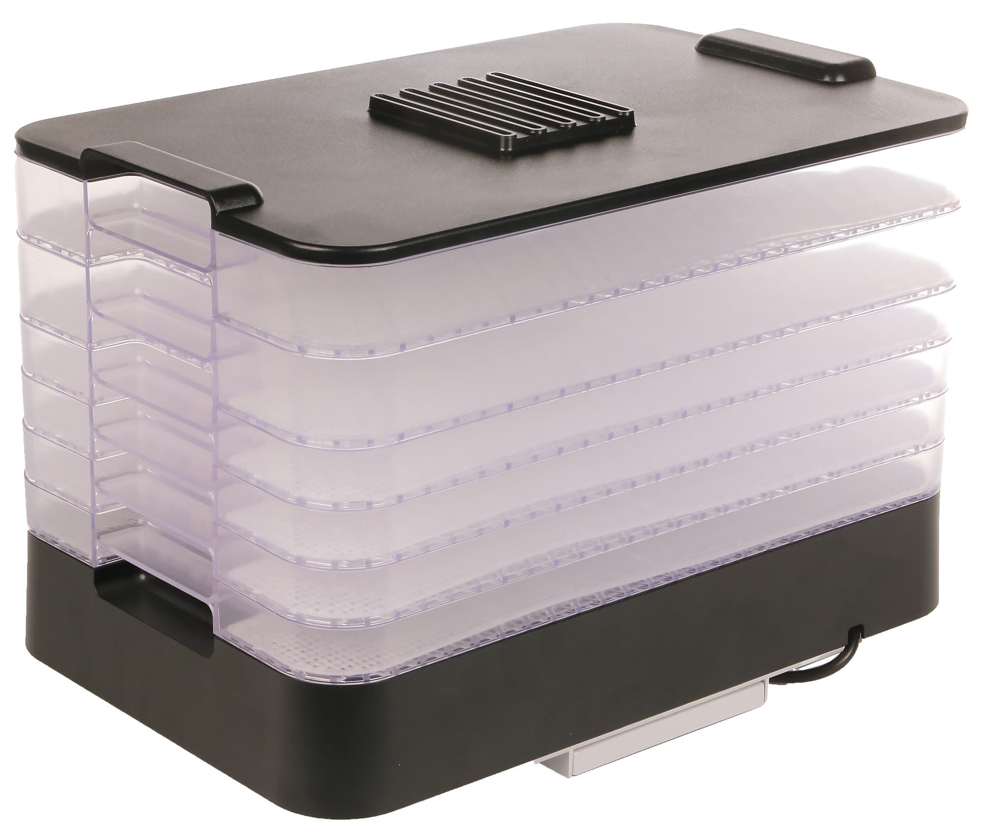 Каждый лоток оснащен мелкоячеистой сеткой, предназначенной для сушки зелени или мелко нарезанных продуктов.