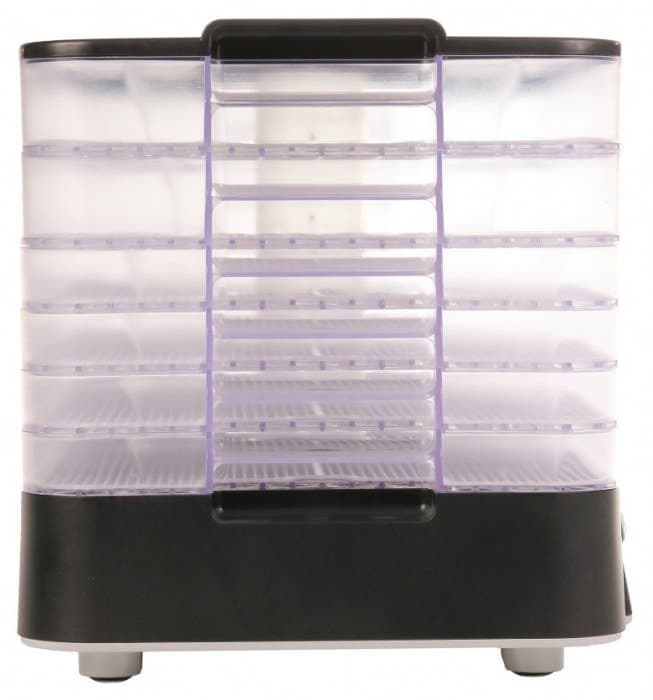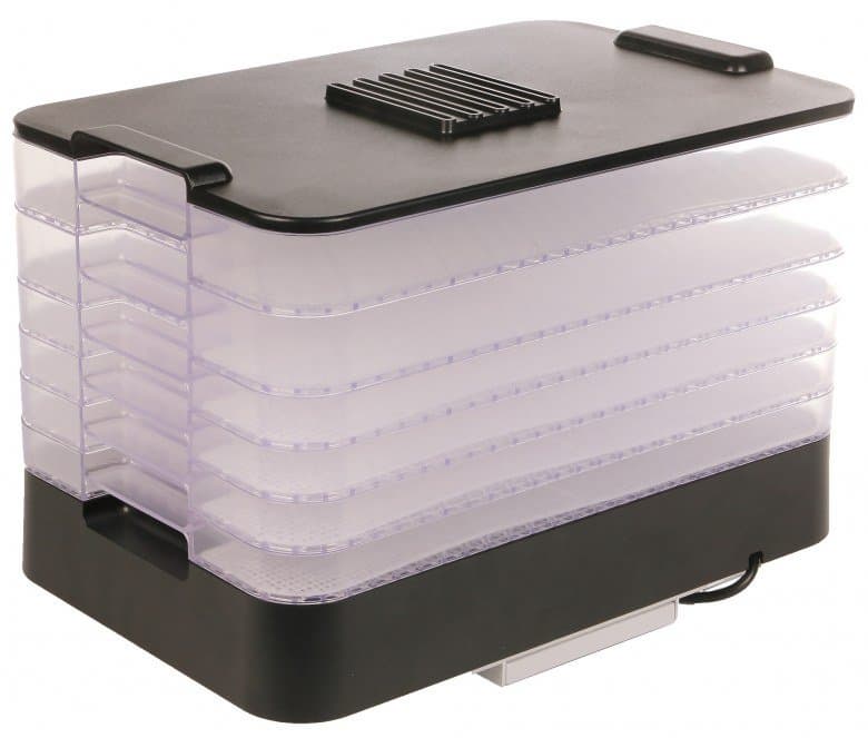 Для переработки трав или мелко нарезанных продуктов лотки оснащены съемными сетками, так что пользователю не нужно придумывать, как использовать подручные материалы, чтобы подсушить зелени на зиму.