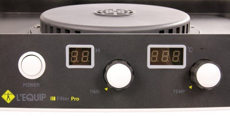 Регуляторы вращаются по и против часовой стрелки, движение гладкое, пошаговость не ощущается. Параметры времени и температуры отображаются на соответствующих дисплеях, расположенных чуть выше и левее регуляторов. Таймер устанавливается в диапазоне от 1 до 99 часов с шагом в один час, термостат — в диапазоне от 35 до 70 °C с шагом в один градус.