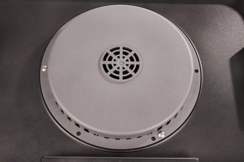 Сверху вся конструкция закрывается крышкой, изготовленной из черного пластика. По центру крышки имеются узкие отверстия длиной чуть более 10 см для вывода влажного воздуха из сушильной камеры.