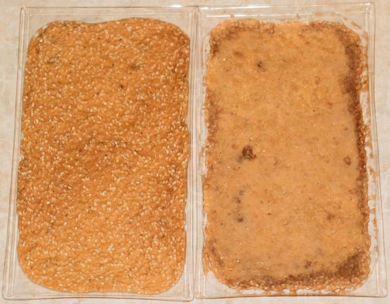 При сушке бананово-яблочной пастилы мы столкнулись с небольшими затруднениями — масса присохла по периметру формы. В связи с этим пастилу было трудно оторвать от поверхности аксессуара. Тонкая яблочная или сливовая пастила, возможно, будет сохнуть, а значит и извлекаться из пластиковой формы легче. Наученные горьким опытом, при последующей сушке льняных хлебцев мы смазали дно и боковые стороны формочек растительным маслом. Позднее, при извлечении подсохших изделий, не возникло никаких трудностей.