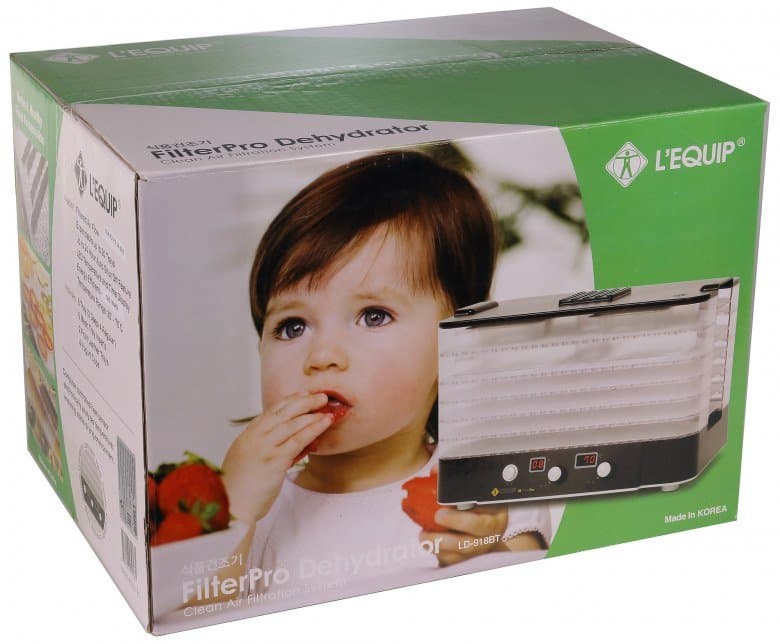 L’equip LD-918BT относится к дегидраторам вертикального типа обдува. Аппарат оснащен термостатом, который производит замеры показаний внутри камеры 60 раз в минуту. Благодаря этому в течение всего процесса сушки продуктов внутри камеры сохраняется заданный пользователем температурный режим. В дополнение производитель оснастил прибор системой воздушной фильтрации, которая не позволяет микрочастицам пыли проникать внутрь камеры.