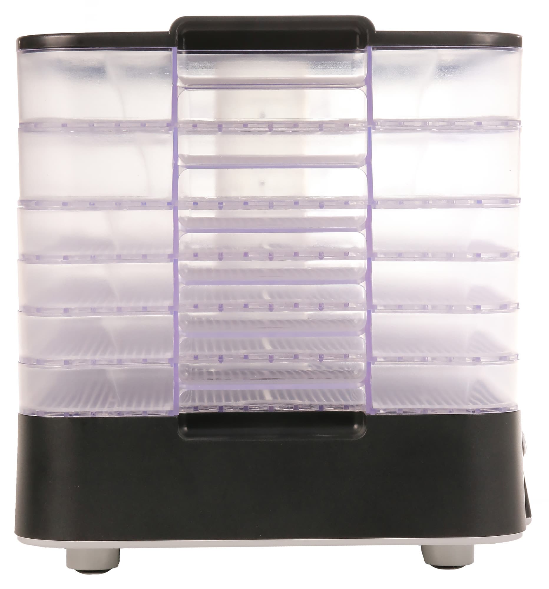 По бокам расположены ручки, с помощью которых поддон удобно держать в руках и перемещать. В комплект к дегидратору L’equip LD-918BT входят четыре лотка высотой 3 см и два лотка высотой 4,2 см.