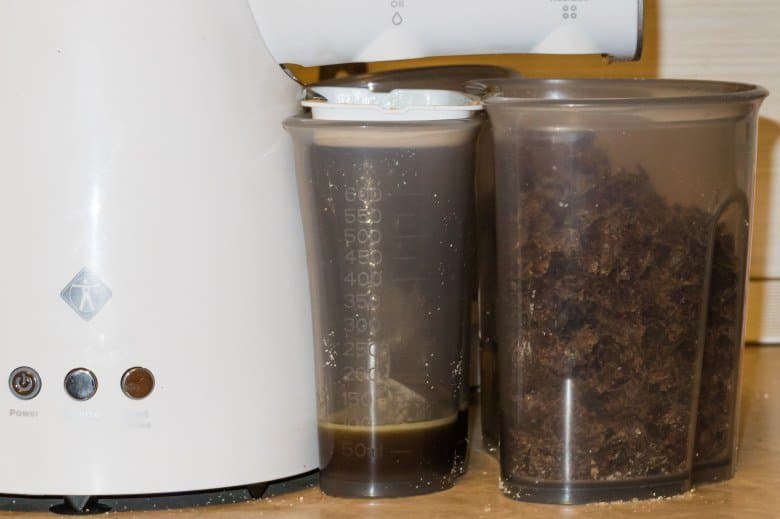 Последний штрих — расположение контейнеров для масла и жмыха. На защитной крышке имеются отметки, которые позволят не ошибиться. Контейнеры стоят плотно друг к другу, так что ни одна капля или крошка продукта не попадут мимо.