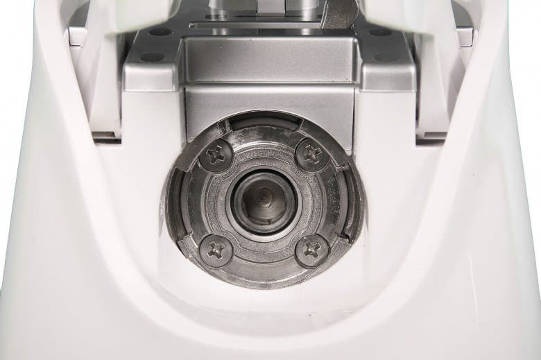 Завершив фиксацию шнека, необходимо установить загрузочную камеру. Данная деталь просто ставится сверху, при правильном расположении раздается легкий щелчок. Если фиксатор отжимной корзины не переведен в заблокированное положение, камера не встанет. Тем самым прибор защищен от неправильной сборки.