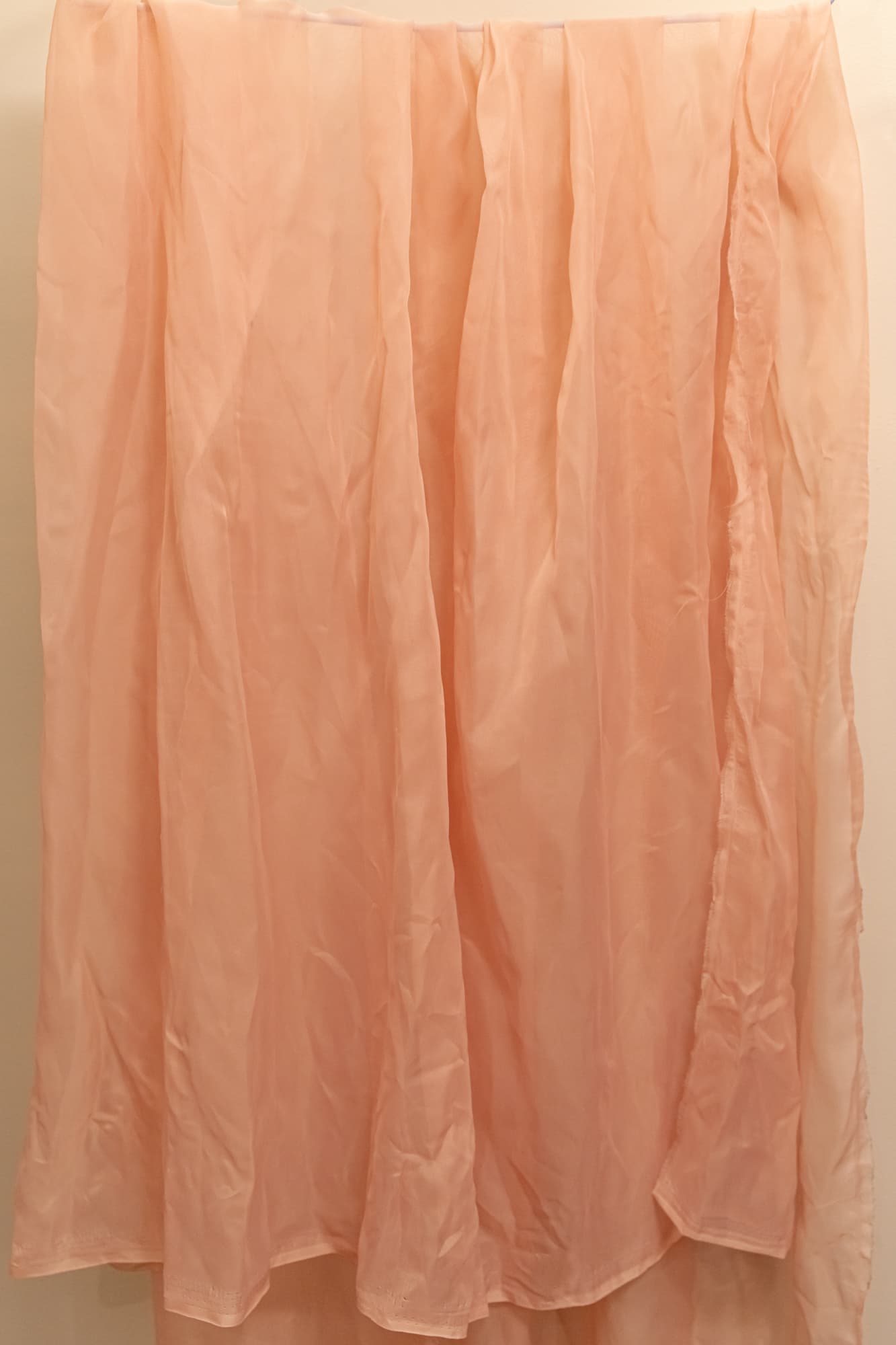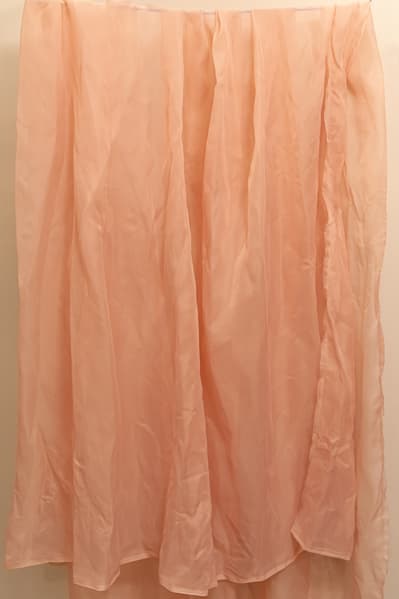 Разложив органзу на гладильной доске, мы продолжили. По идее, эту ткань следует приводить в порядок на режиме I, без пара. Мы попробовали, но ткань разглаживалась слишком медленно. Даже при прохождении утюга по одному и тому же месту несколько раз часть складок оставалась заметной. Тогда мы вернули режим II и поставили регулятор подачи пара на минимум. Теперь, за считанные минуты мы получили идеально выглаженную ткань. Паровой удар не понадобился. Повышение температуры и пар ткань не испортили.