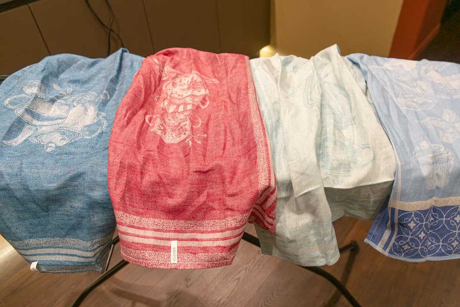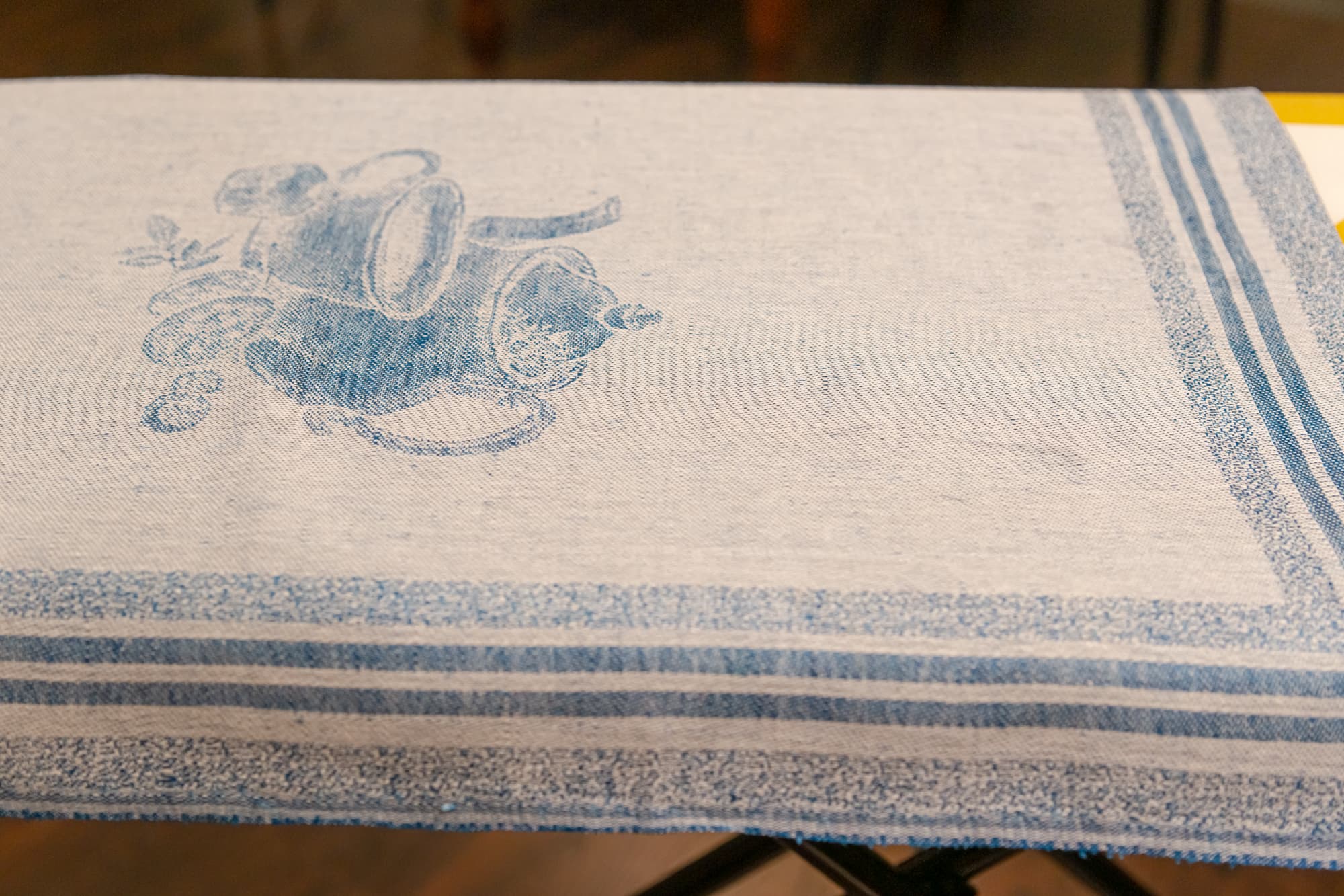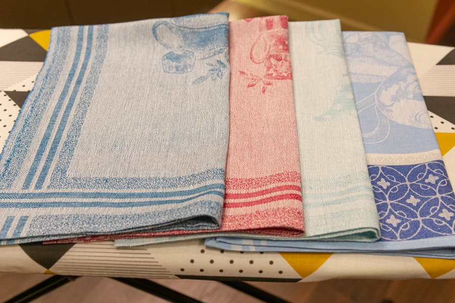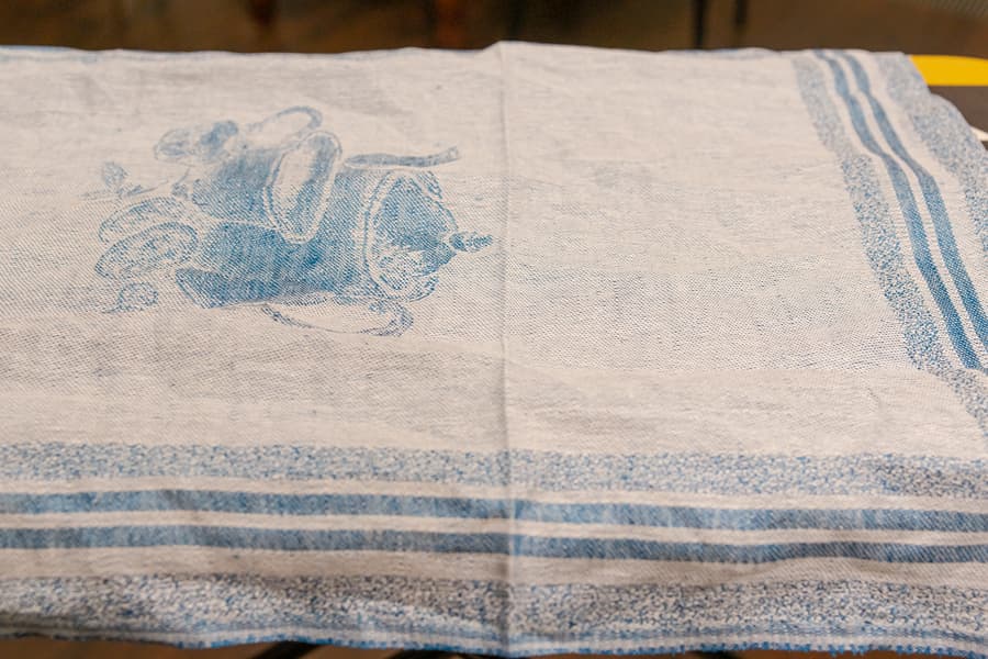 Мятые полотенца из плотной ткани, состоящей на 50% из льна и на 50% из хлопка, обрабатывались также на режиме III с постоянной подачей пара. Регулятор пара мы передвинули на максимум.