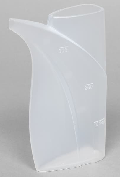 Утюг комплектуется мерным стаканом. Емкость для заливки воды в резервуар вмещает до 350 мл. Стакан выполнен из прозрачного пластика и имеет удобную форму с зауженным носиком.