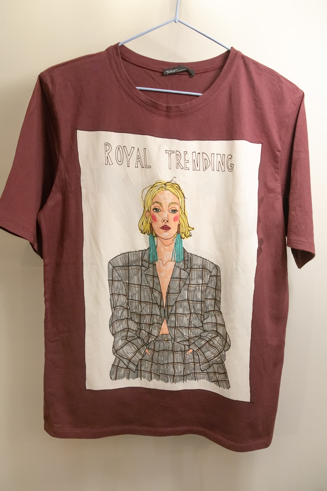 Вопреки рекомендациям изделие гладили с лицевой стороны. Футболка быстро и легко разгладилась при постоянной подаче пара в минимальном режиме на уровне нагрева II. Паровой удар нам не потребовался. Принт в полном порядке, ткань разглажена.
