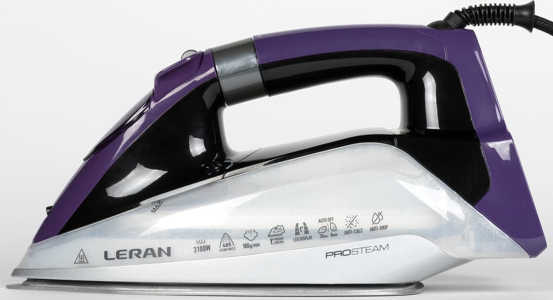 Leran CEI 700 мощностью 3100 Вт умеет всё, что обычно требуется от утюга: отпаривает на разных режимах в горизонтальном и вертикальном положении, оснащен функцией парового удара, керамической подошвой с 485 отверстиями для выхода пара, противокапельной системой и автоотключением на случай, если про него забыли.