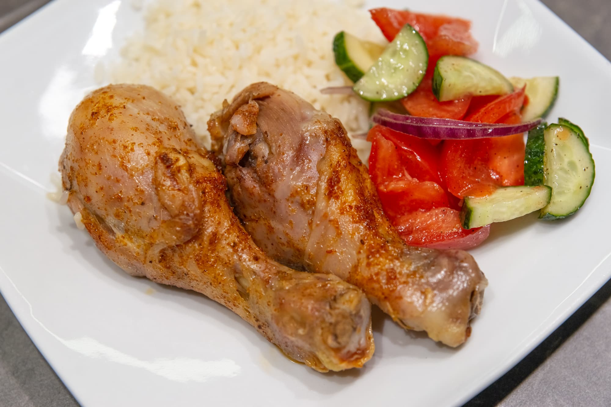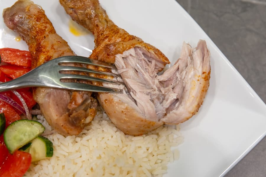 Еще 10 минут — и у нас были аппетитные, полностью прожаренные сочные куриные ножки. Что тут добавить? Отлично!
