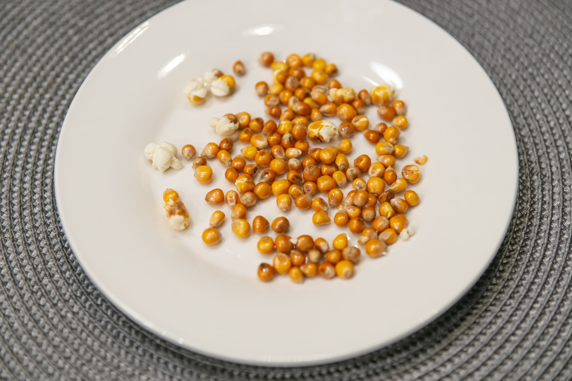 Второй пакет мы поместили в печь на режим 3,5, что соответствует уже 3 минутам, и нераскрытых зерен было вполовину меньше.