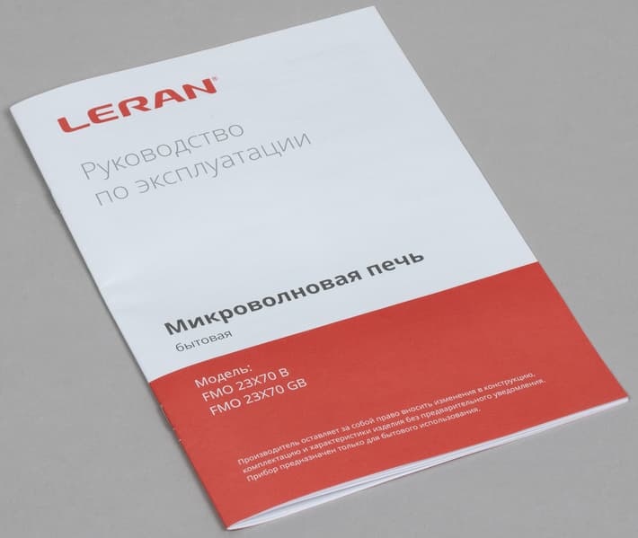 Небольшая брошюра на 17 страниц одновременно является инструкцией сразу к двум моделям микроволновок: Leran FMO 23X70 B и Leran FMO 23X70 GB.