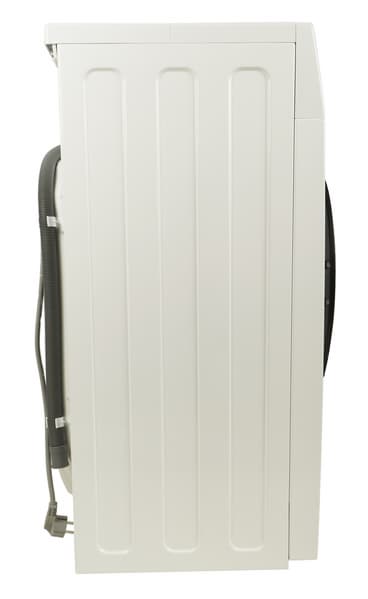 Вскрыв коробку, мы обнаружили внутри саму стиральную машину, пакет с установочным комплектом, руководство пользователя и наклейку с информацией об энергоэффективности прибора.