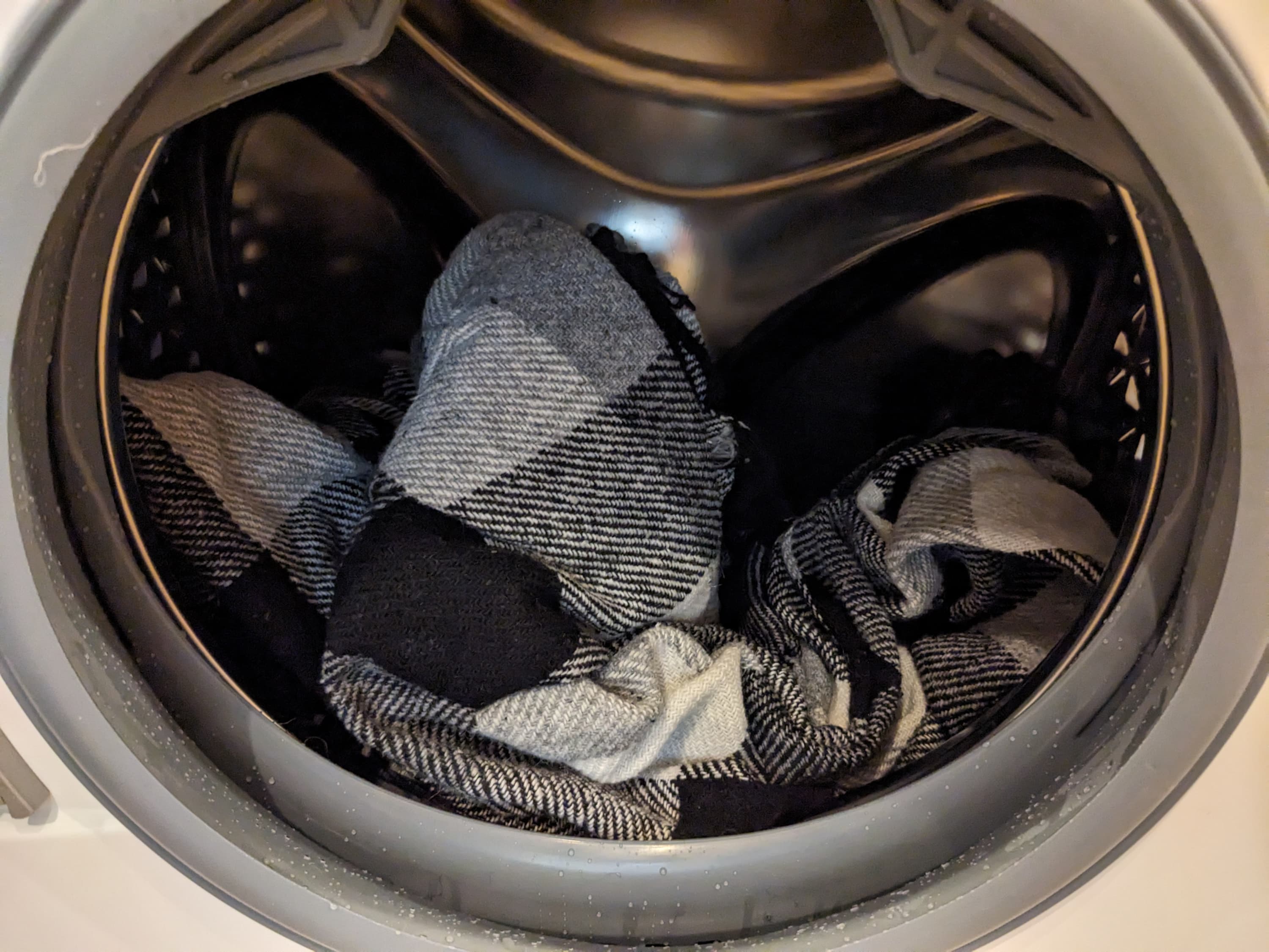 Настал черед и более деликатных тканей. Наш любимый шерстяной плед весом чуть меньше килограмма мы постирали на соответствующем режиме.