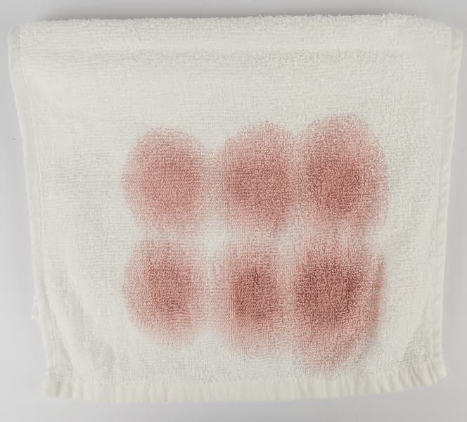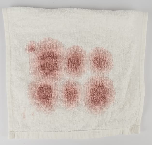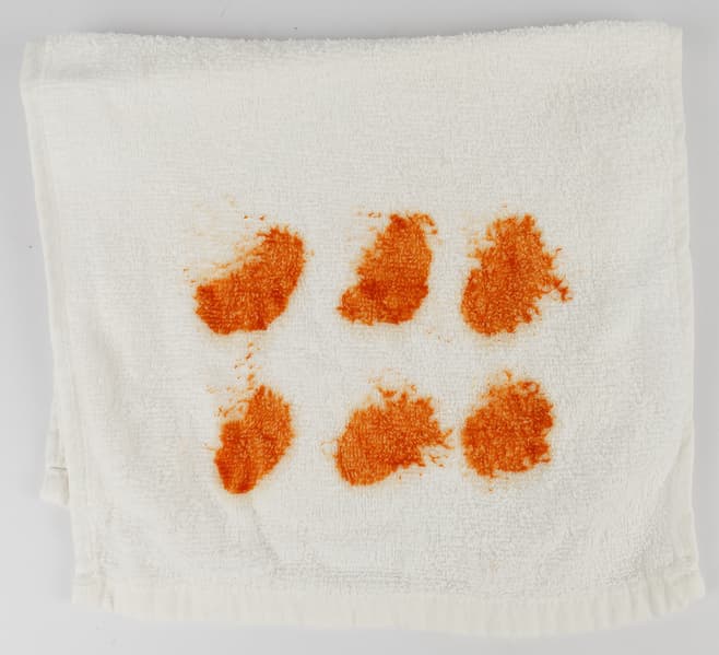 На каждое полотенце мы налили свое вещество: красное вино, соевый соус, кетчуп, кровь и какао.