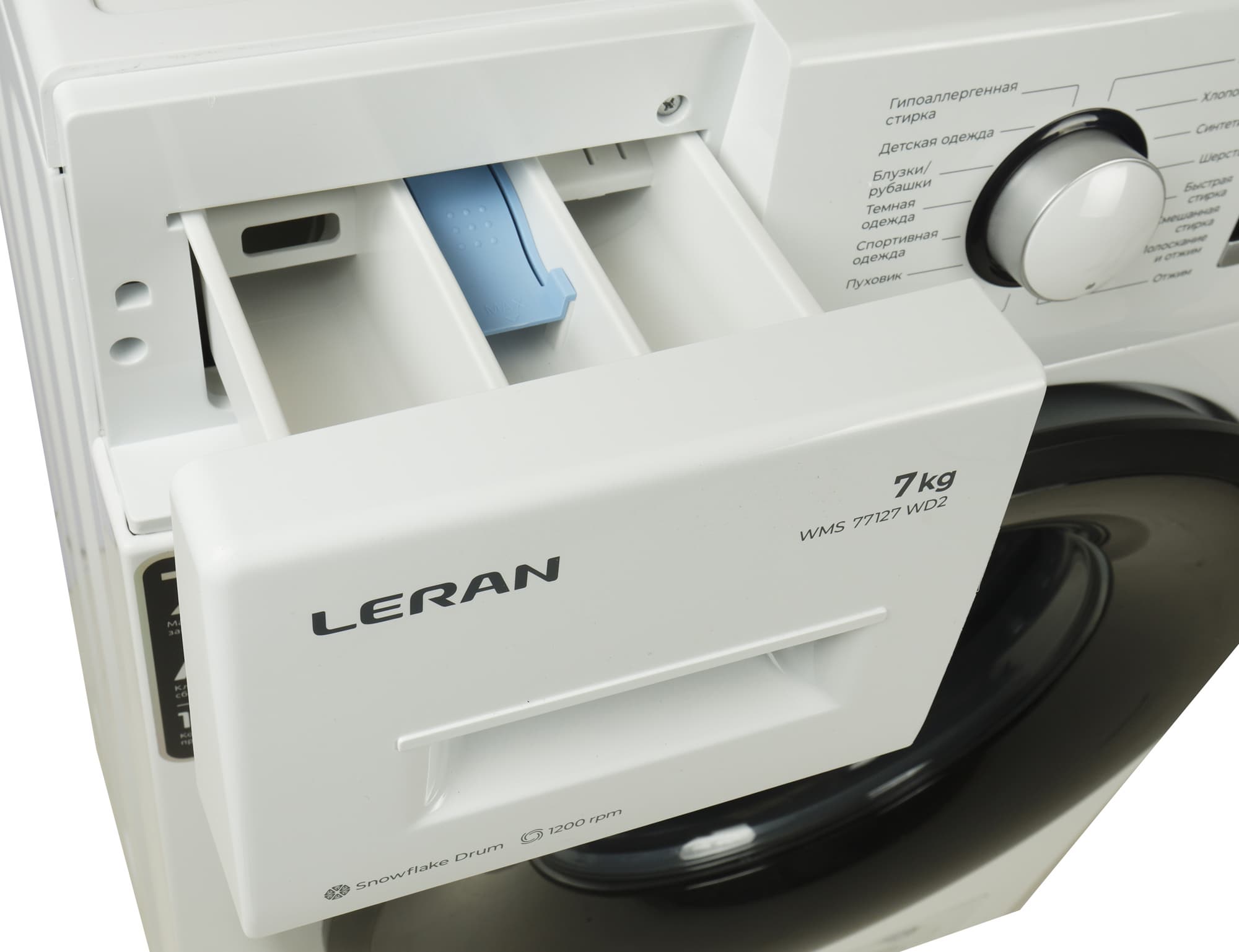 Стиральная машина Leran WMS77127 WD2 понравилась нам хорошей экономичностью, адекватным набором встроенных программ, неплохим качеством стирки и удобным несложным управлением. Прибор не перегружен дополнительными опциями, но хорошо справляется с главной функцией: стиркой разнообразной одежды.