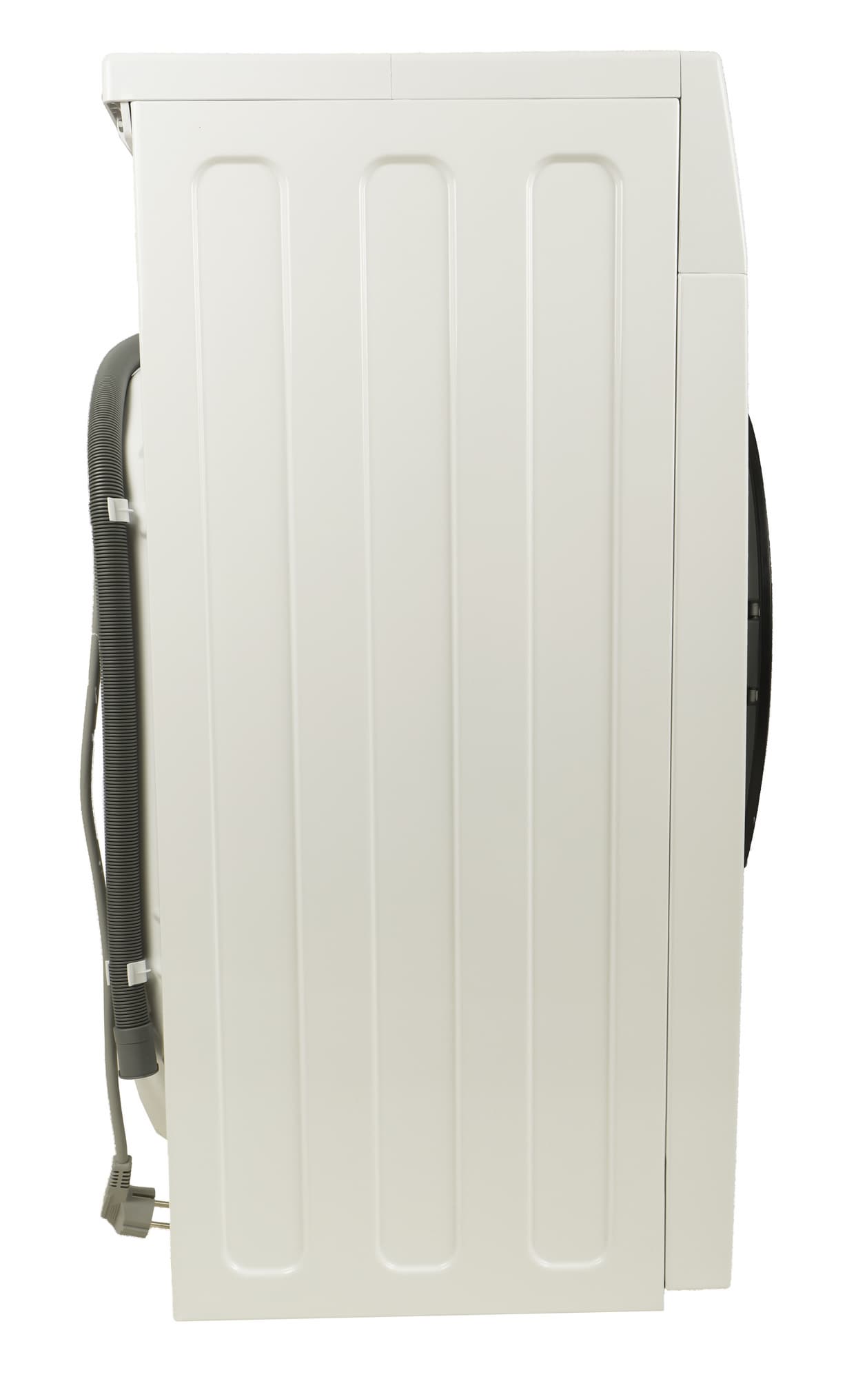 Металлические боковые стенки снабжены выштамповкой, увеличивающей жесткость конструкции. Пластиковое обрамление крышки люка чуть выдается за передний габарит корпуса, несущественно увеличивая общую глубину стиральной машины. Она у Leran WMS77127 WD2 невелика: всего 46 см.