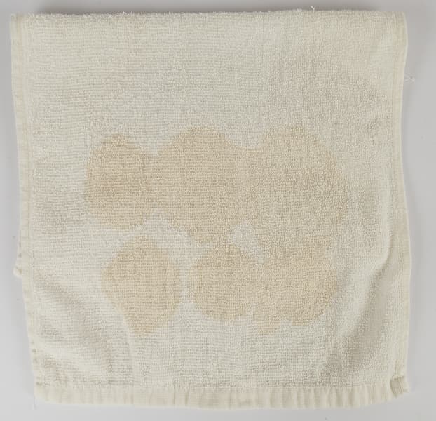 Чтобы полностью удалить следы загрязнений, мы воспользовались отбеливателем и простирали ткань еще раз на максимальной температуре.