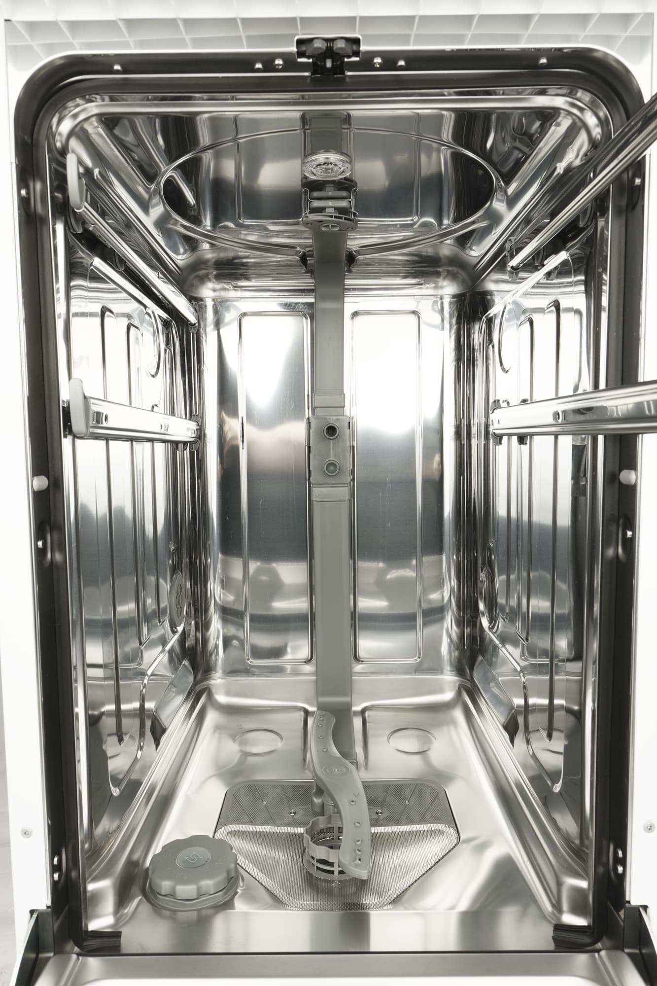 Боковые стенки посудомойки гладкие, окрашенные белой эмалью.