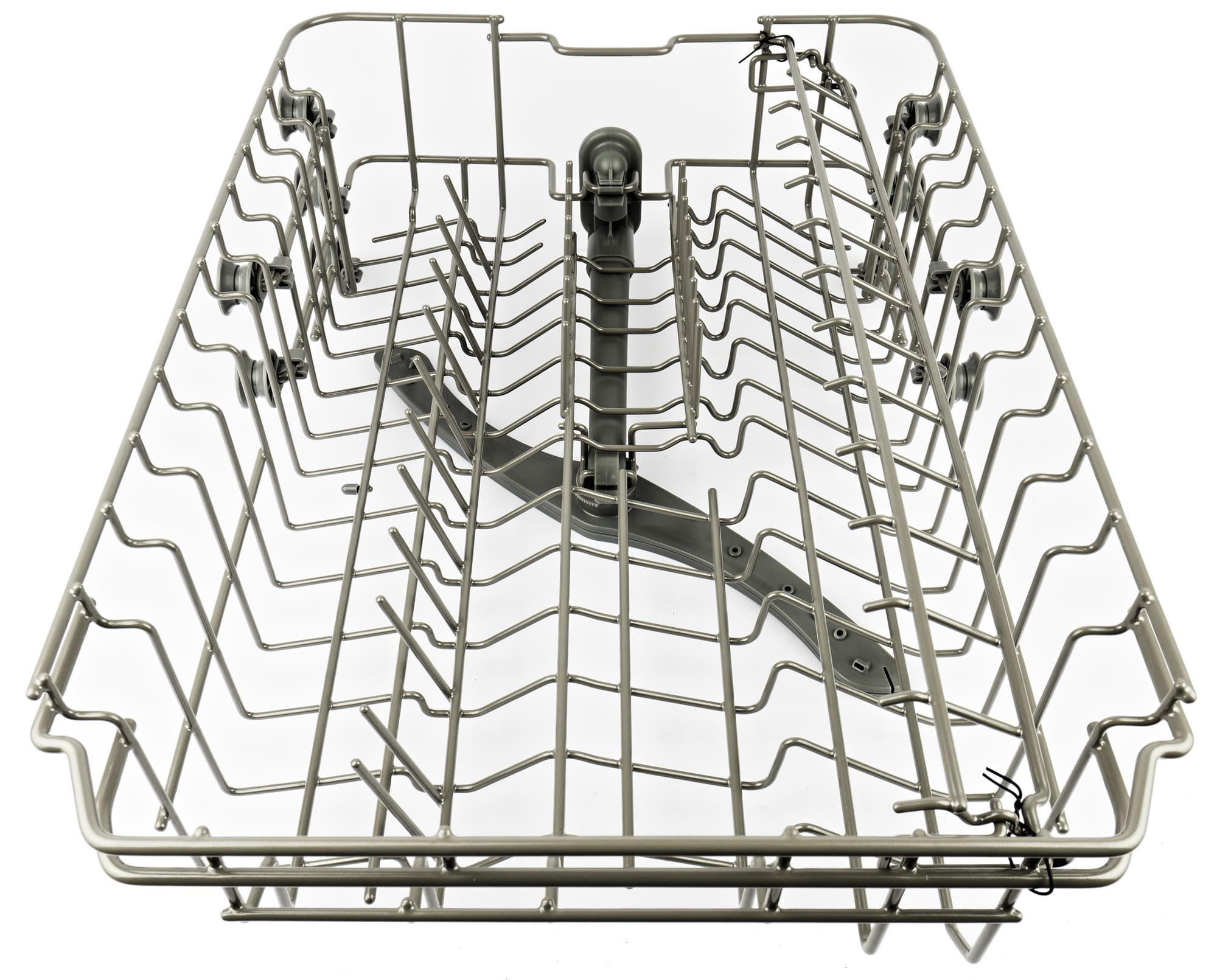 Наличие отдельной полки для столовых приборов кажется нам существенным плюсом: с такой конструкцией не приходится нагибаться к нижней корзине ради каждой чайной ложки. А вот недостаточную степень трансформируемости средней полки мы относим к недостаткам конструкции: для идеала ей не хватает возможности сложить направляющие и, как нам кажется, второй откидывающейся полки.