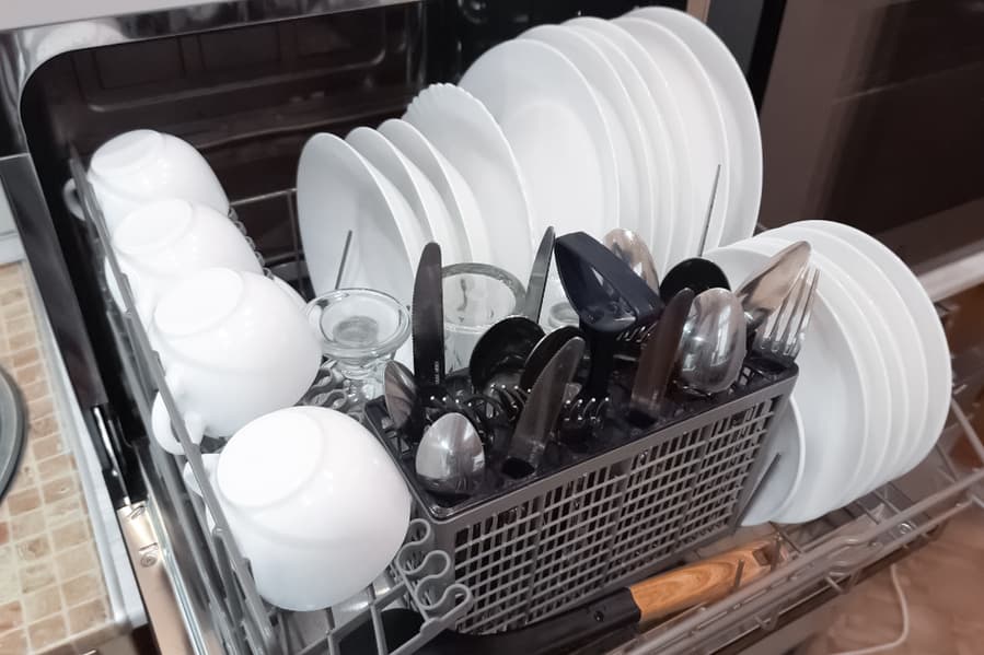 11 литров воды хватило, чтобы качественно помыть посуду, а вот саму себя машина сполоснула не очень тщательно.