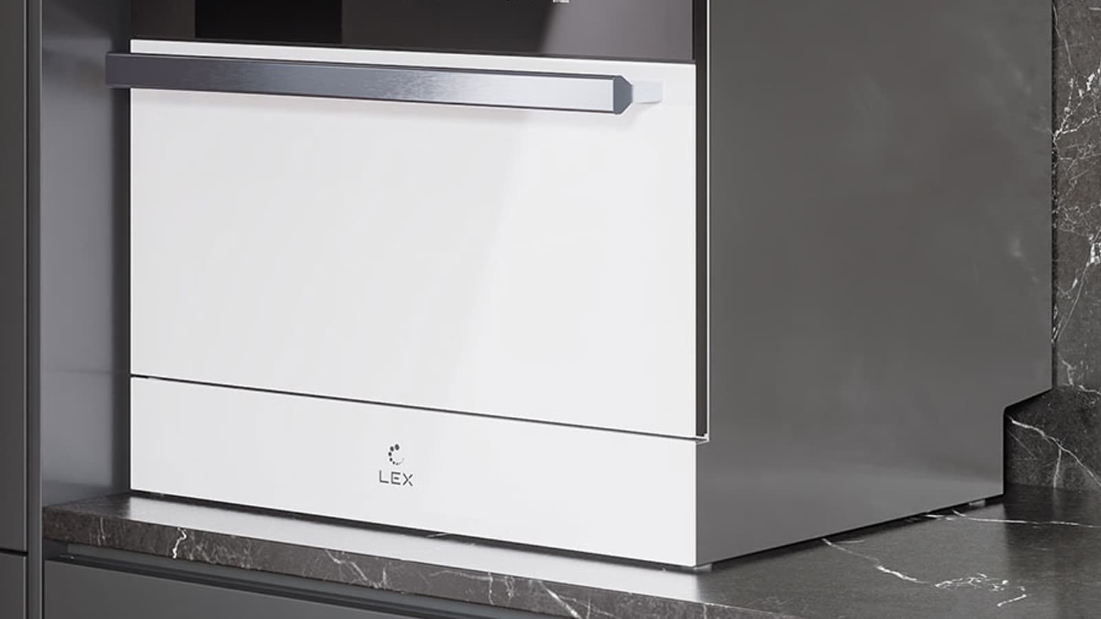 Лицевая сторона Lex DW4541 WH Compact выполнена из белого толстого стекла. Панель управления, расположенная привычно в верхней части, и логотип бренда внизу — выделены черным. Изображения нанесены краской под стекло, а значит, стираться со временем не будут.