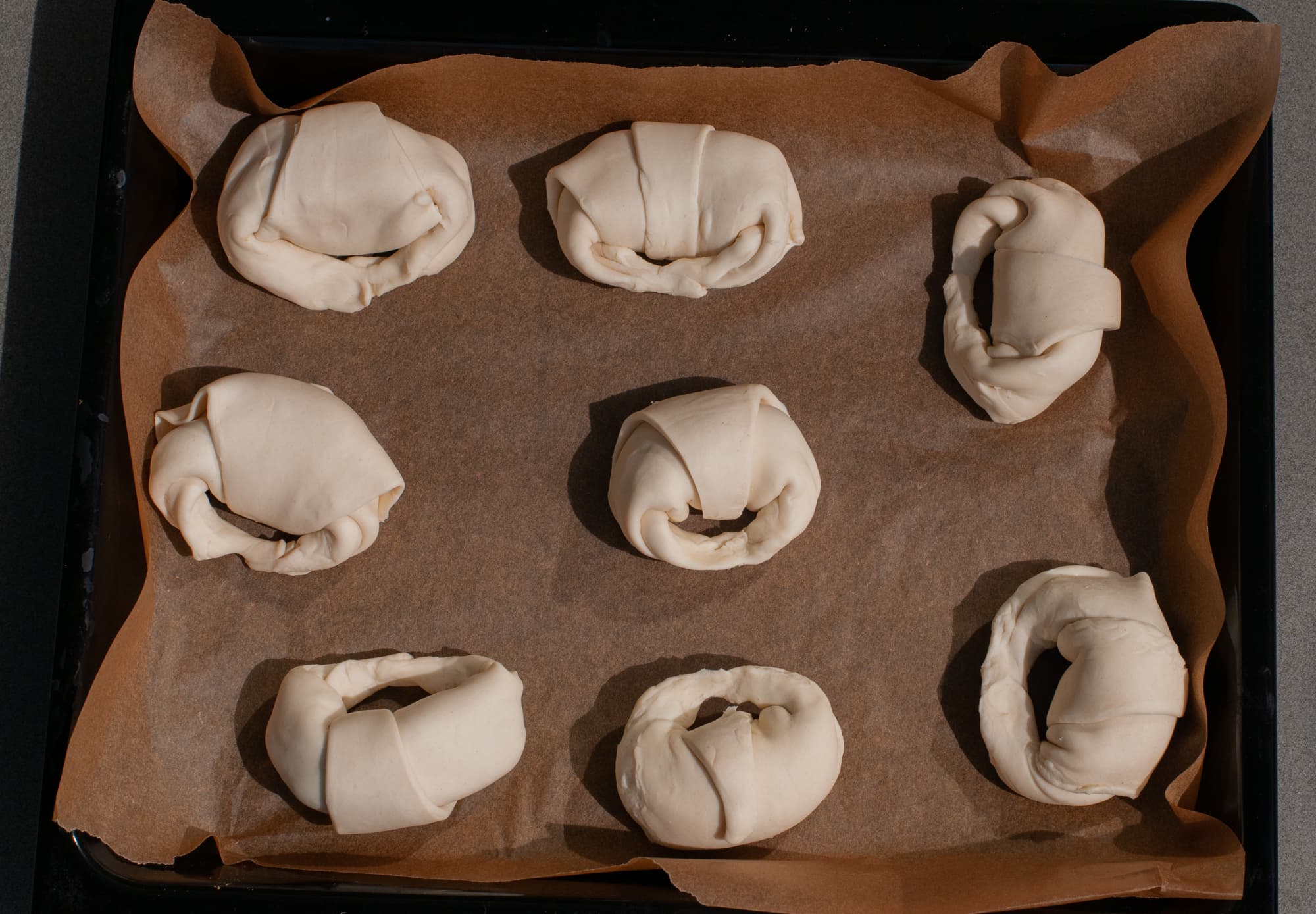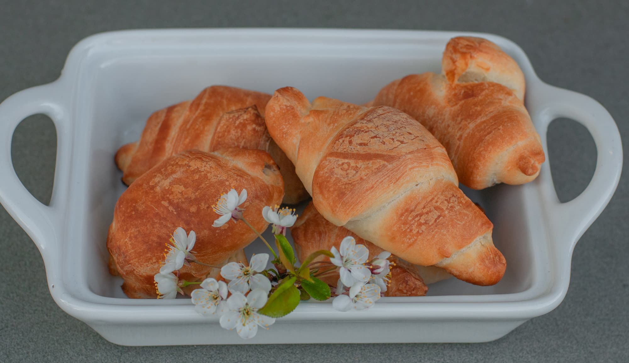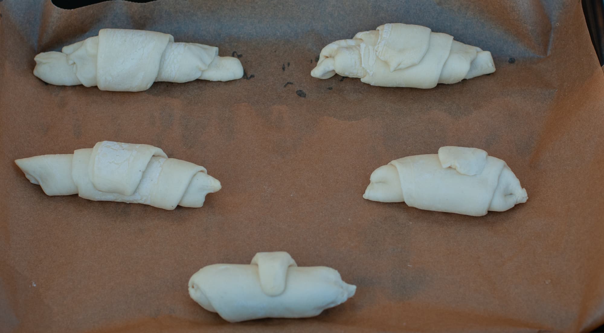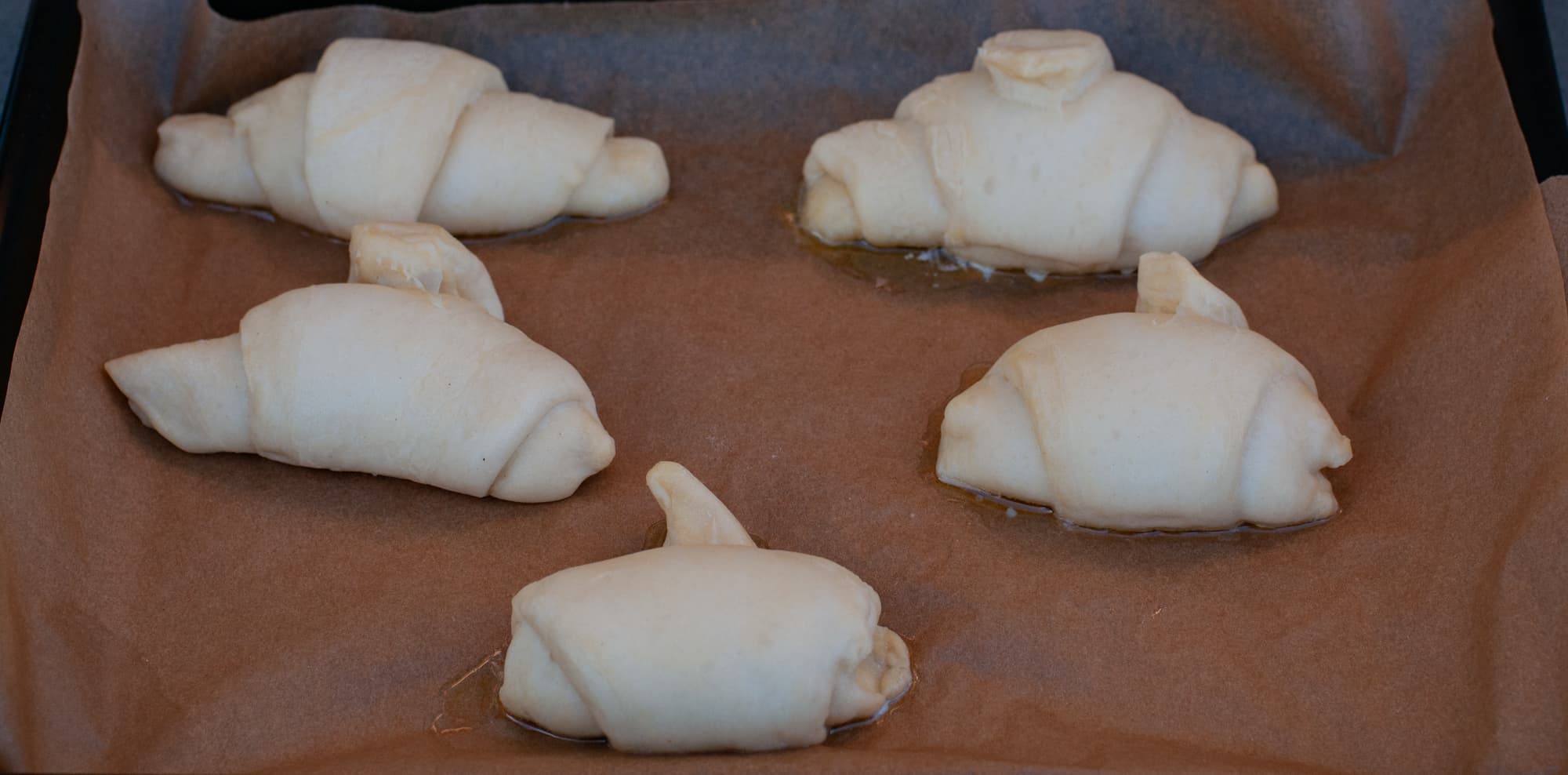 Результатом остались довольны. Круассаны равномерно пропеклись, и снизу, и сверху, одинаково в пределах противня. Процесс готовки занял совсем немного времени, а круассаны получились очень вкусные.