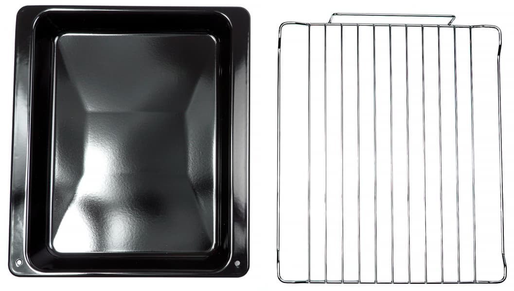 В комплектации присутствует только глубокий противень и решетка. Противень для выпечки найти сложнее, чем для стандартной духовки, но нам удалось.