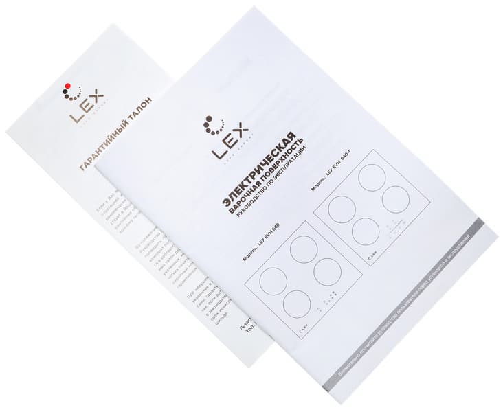 В выключенном состоянии варочная панель Lex EVH 640, подключенная к сети, потребляет 0,4 Вт. Включенная панель с неработающими конфорками — 1,0 Вт.
