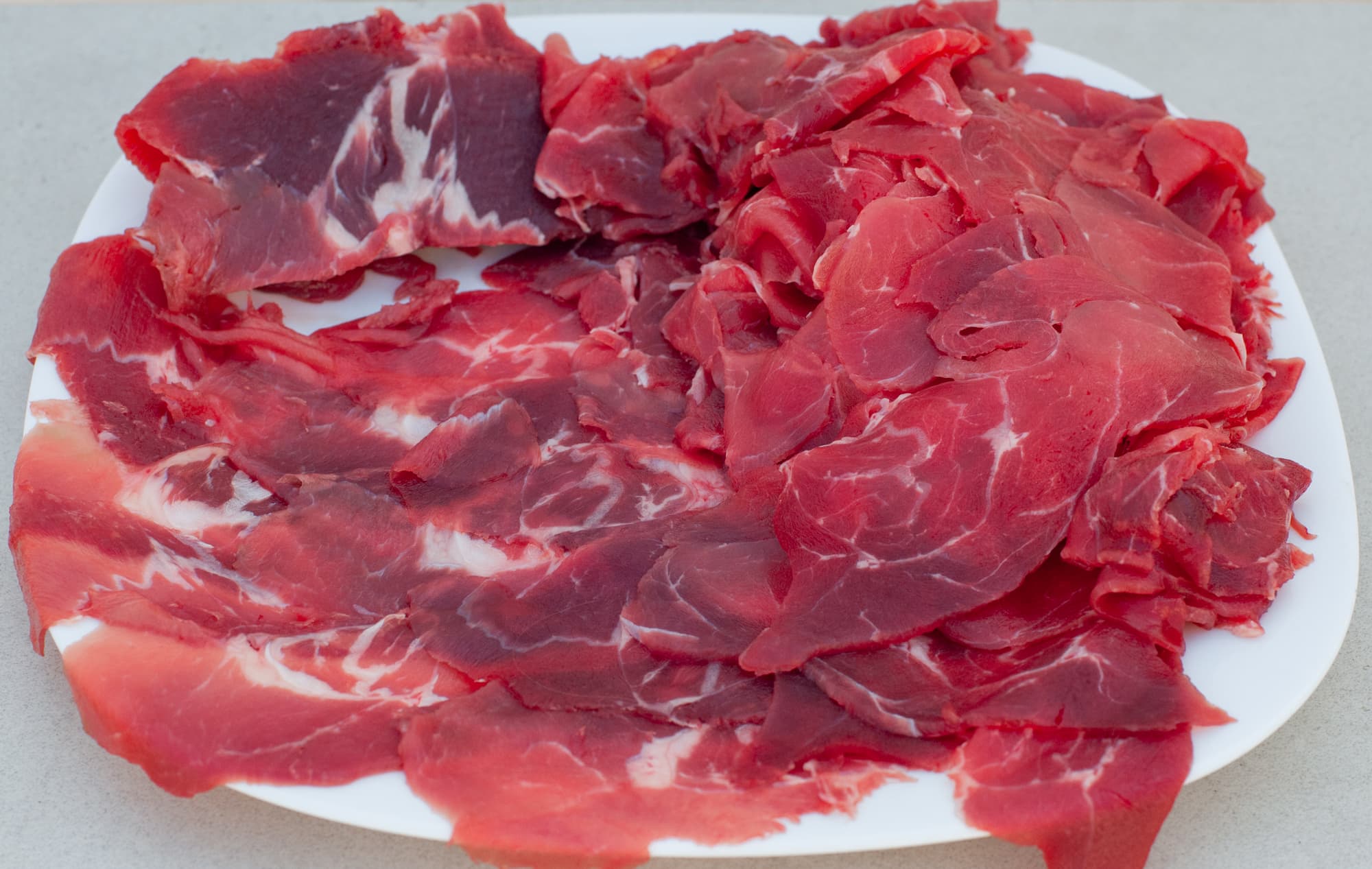 Мы взяли говядину и свинину, нарезали тонкими кусочками и обжарили на максимальной мощности в режиме совмещения конфорок FlexZone на сковороде 30 см диаметром.
