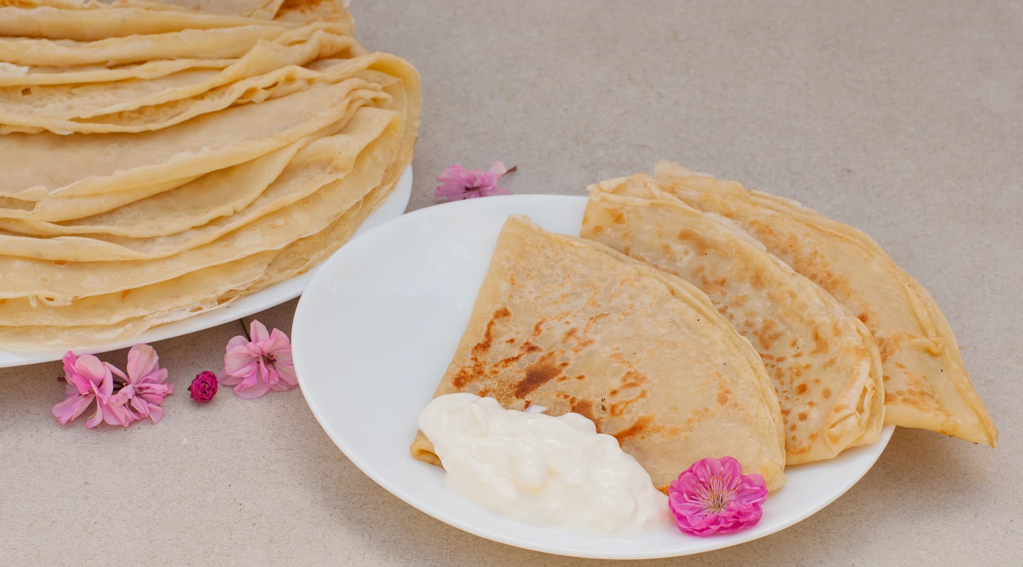 Мы сделали стандартное блинное тесто, взяли чугунную сковородку диаметром 32 см. После некоторых проб оказалось, что оптимальная мощность для тонких блинов в нашем случае — 7.