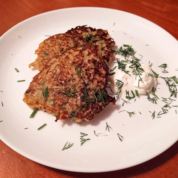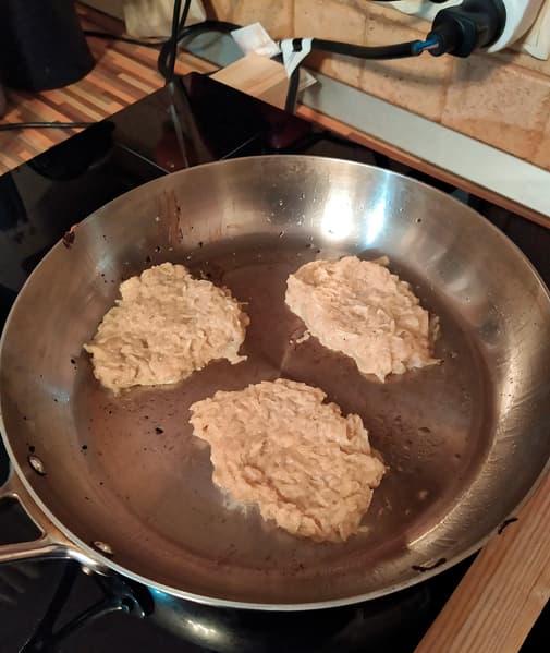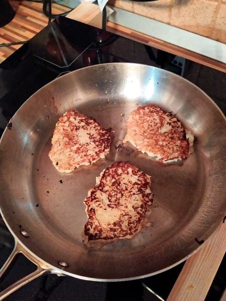 Перевернув драники, снова заметили, что есть легкая неравномерность обжарки, так что имели это в виду в дальнейшем и периодически поворачивали сковороду.