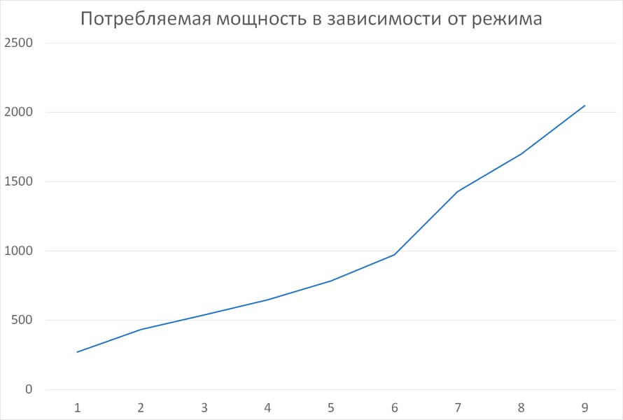 Как мы видим, несмотря на разницу в мощности, алгоритм поведения обеих конфорок очень похож: график, конечно, нельзя назвать ровной прямой, но он довольно близок к ней. Фактически, это означает максимально логичное поведение: нагрев повышается плавно и с каждой следующей ступенью на примерно одну и ту же величину.
