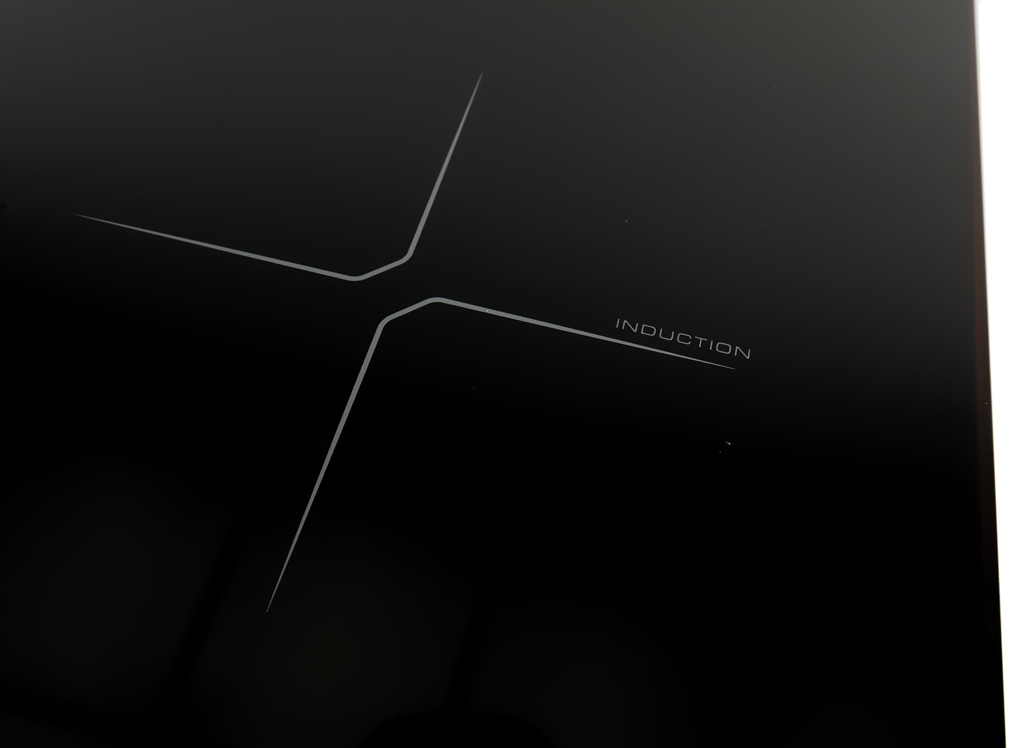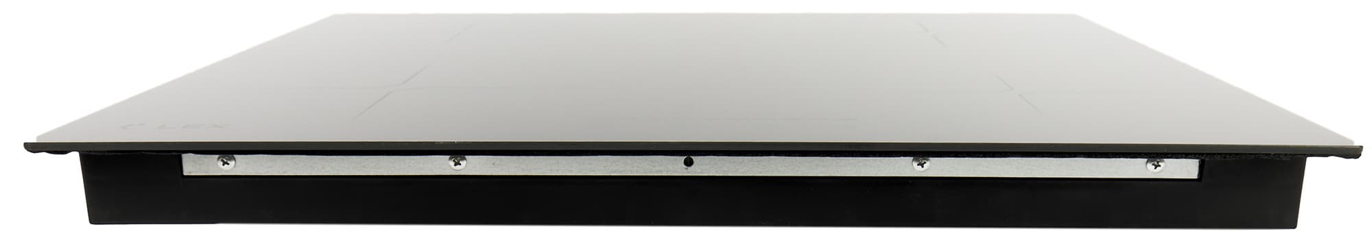 Толщина стеклокерамической поверхности составляет 4 мм. Снизу по периметру она оснащена тонкой поролоновой вставкой. Общая толщина конструкции — почти 6 см.