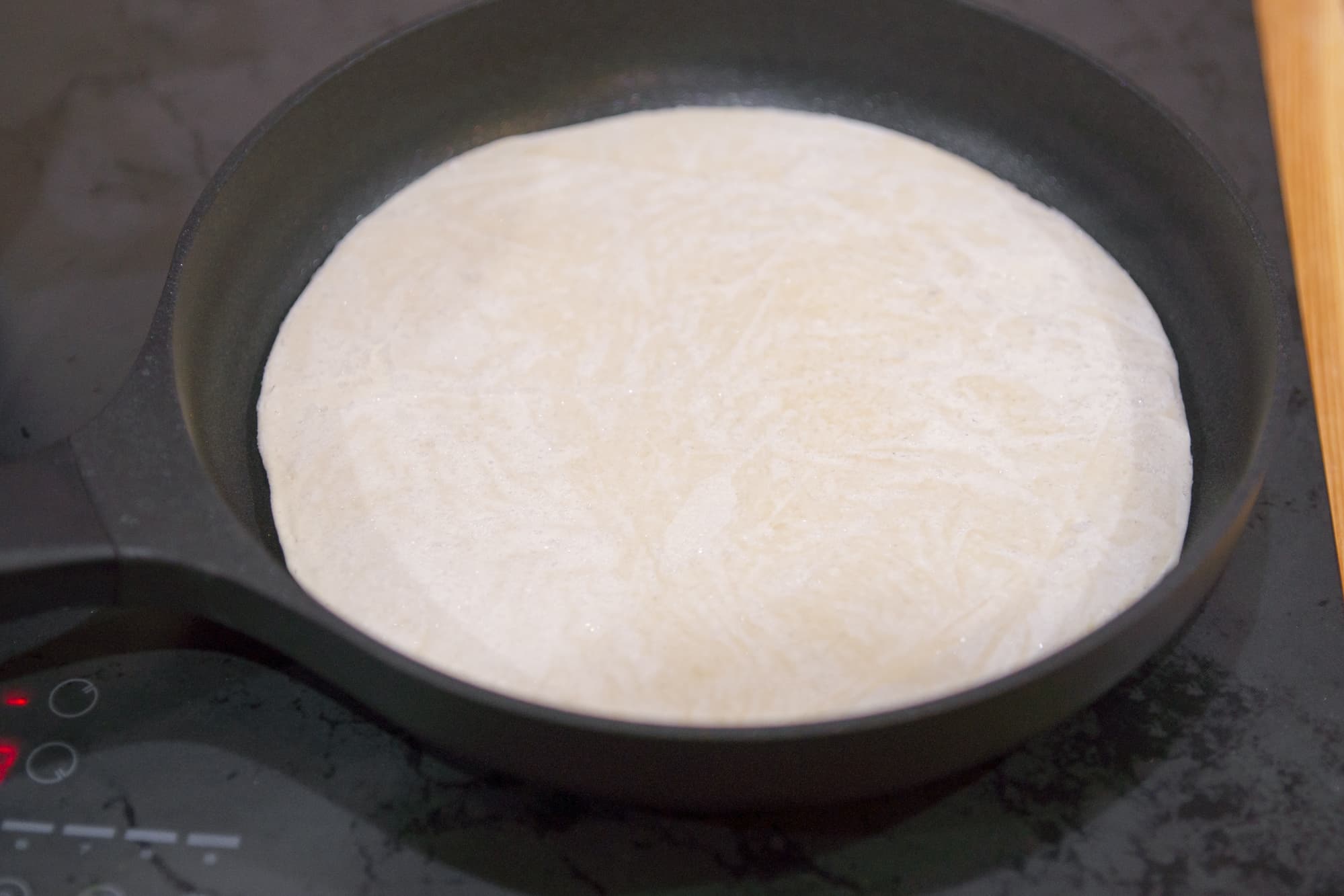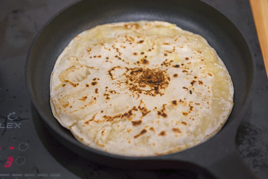 Сильно замороженную тонкую лепешку с картофелем и сыром положили на сухую раскаленную сковородку…