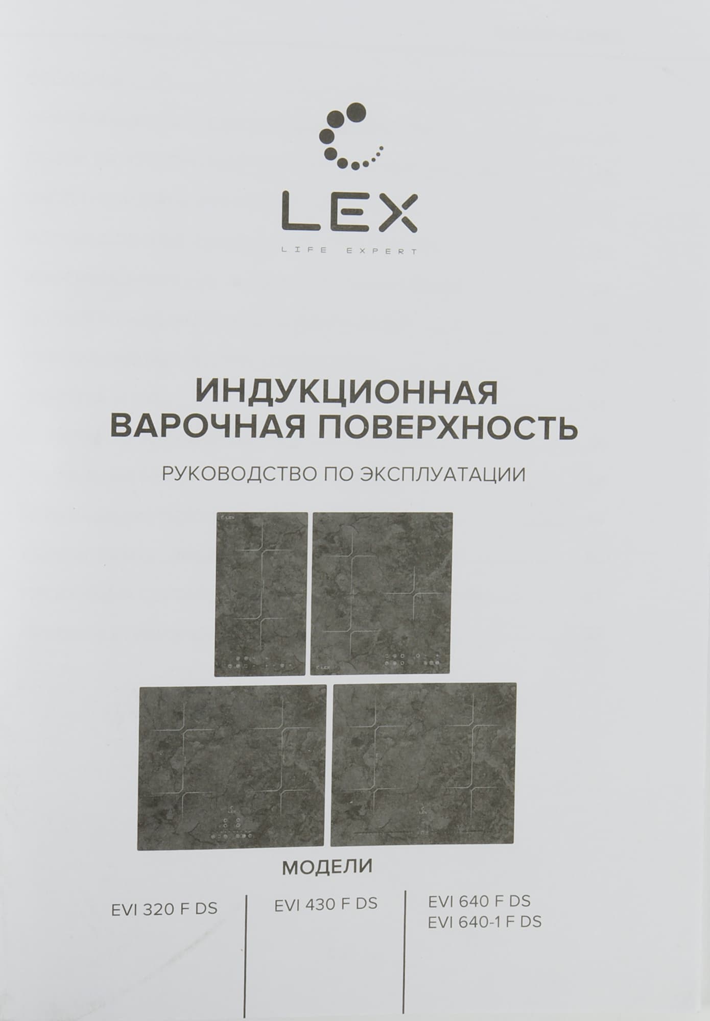 Встраиваемая индукционная панель Lex EVI 640 F DS имеет безрамочную стеклокерамическую поверхность. Вместо классического глянца на покрытие этой модели нанесен матовый, слегка шершавый на ощупь, рисунок «под мрамор».
