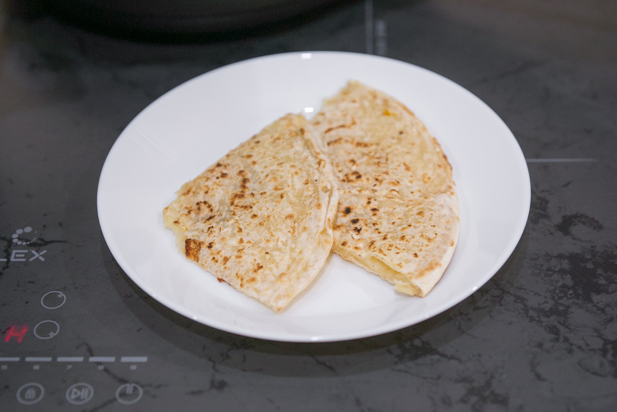 Центр поджарился сильнее, но не критично. Внутри лепешка разморозилась и прогрелась равномерно. Тесто сырым не осталось.