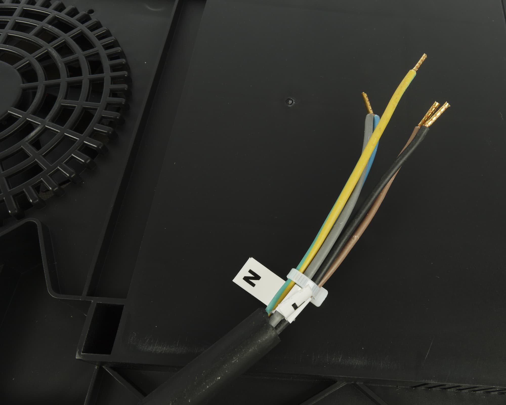 Ближе к тыльной стороне корпуса — выход кабеля длиной около 80 см без вилки. Панель подключается к стандартной сети электропитания с параметрами 220—240 В, 50/60 Гц.