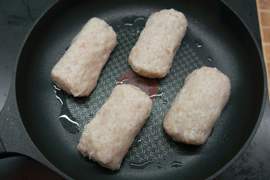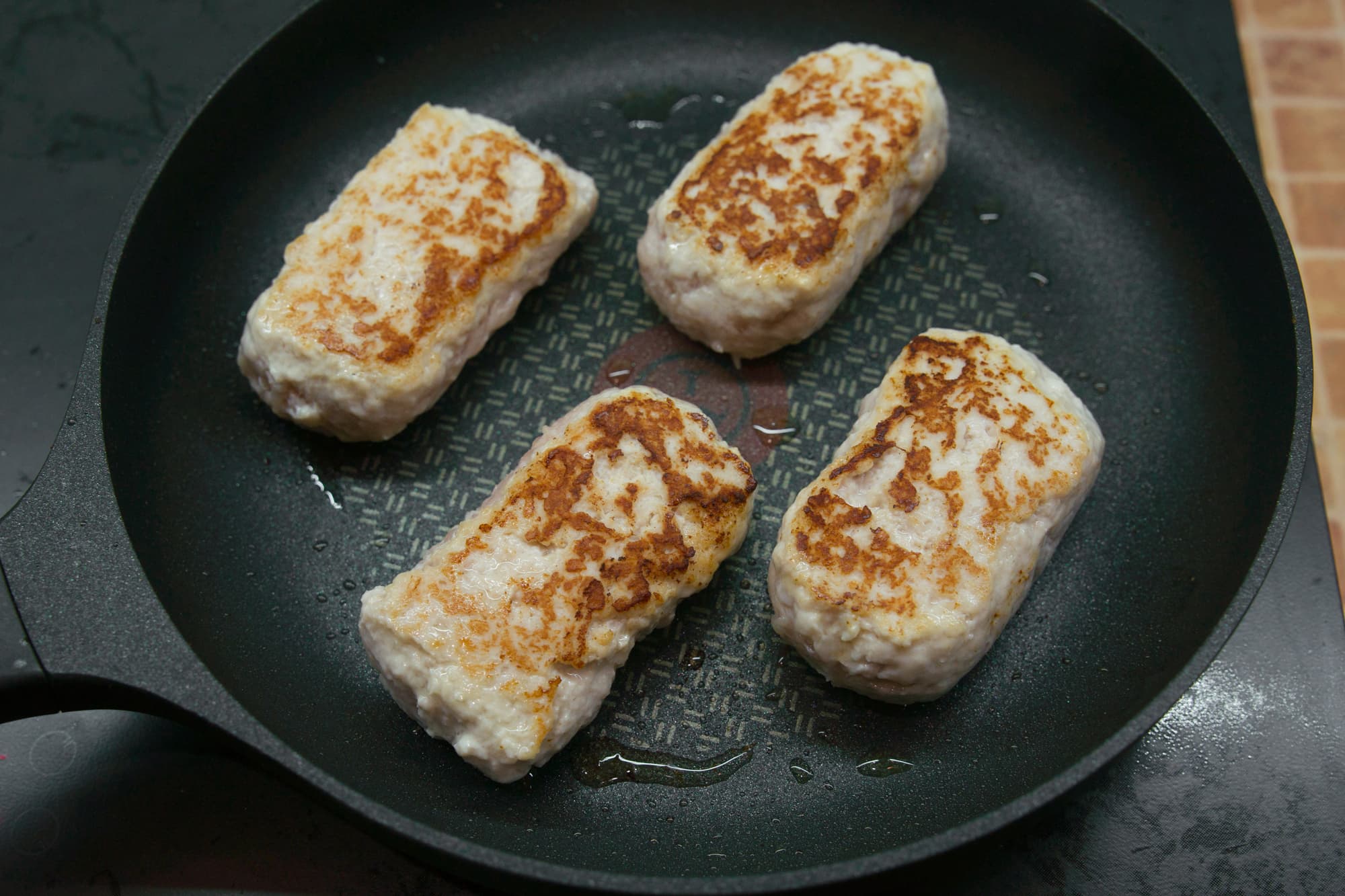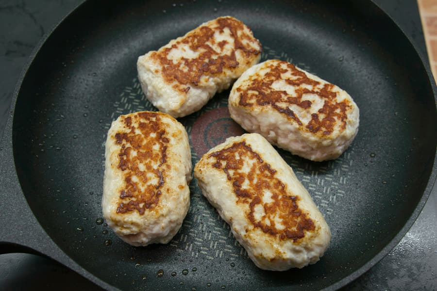 Куриные котлеты сначала были обжарены с двух сторон на 9-м уровне мощности.