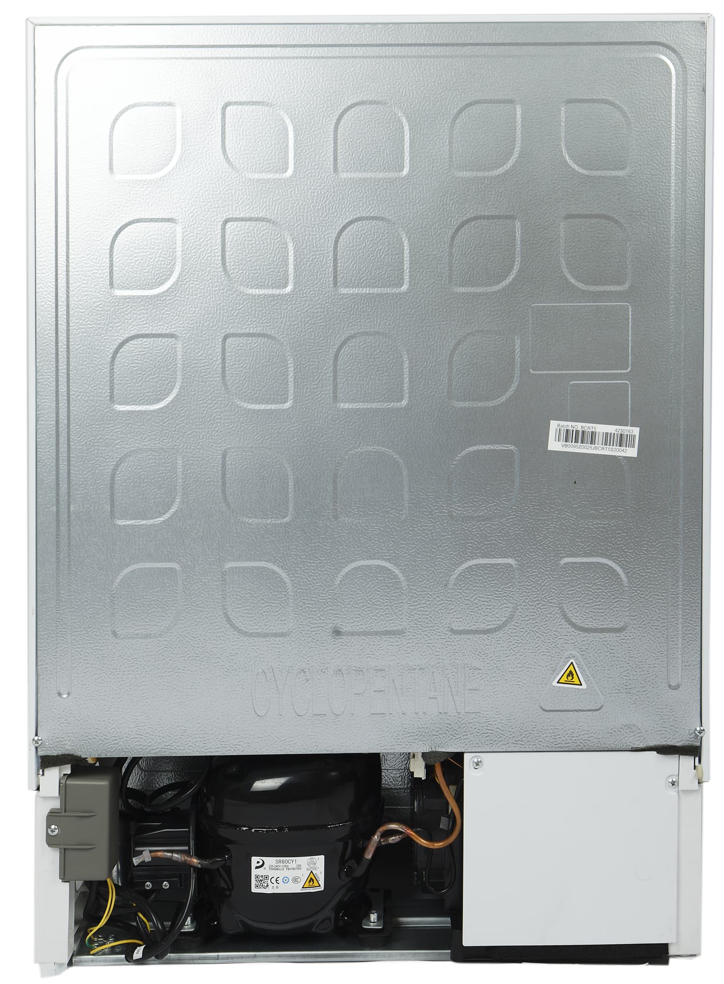 В нижней части тыльной панели размещается ниша холодильного агрегата. В конструкции Lex RBI 101 DF использован малогабаритный компрессор CR60CY1, смонтированный, как полагается, на круглых резиновых амортизаторах, смягчающих вибрацию.