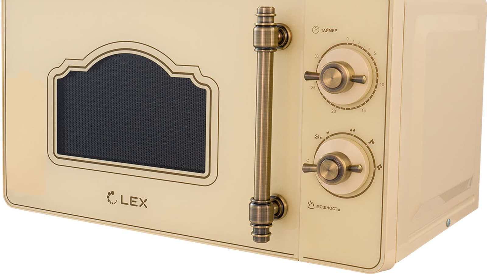Микроволновая печь Lex FSMO M.03IV из коллекции с говорящим названием Vintage не только оформлена под старину, у нее и функциональность вполне себе ретро: никаких новомодных грилей и конвекций, только старая добрая СВЧ-классика. Давайте познакомимся с ней поближе.